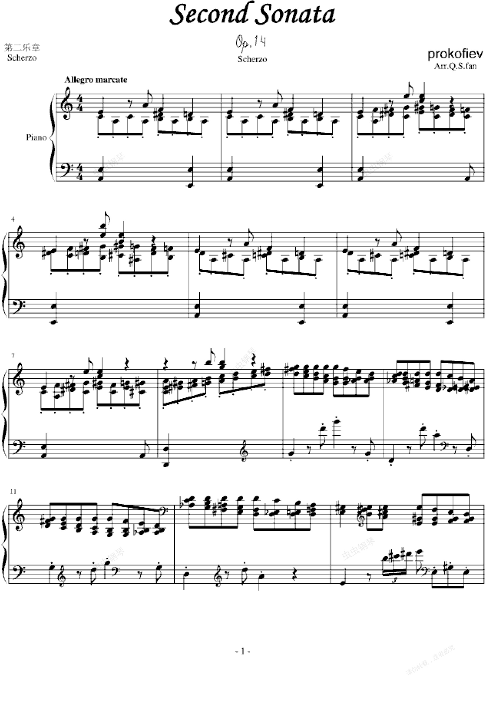 钢琴谱:第二钢琴奏鸣曲 第二乐章