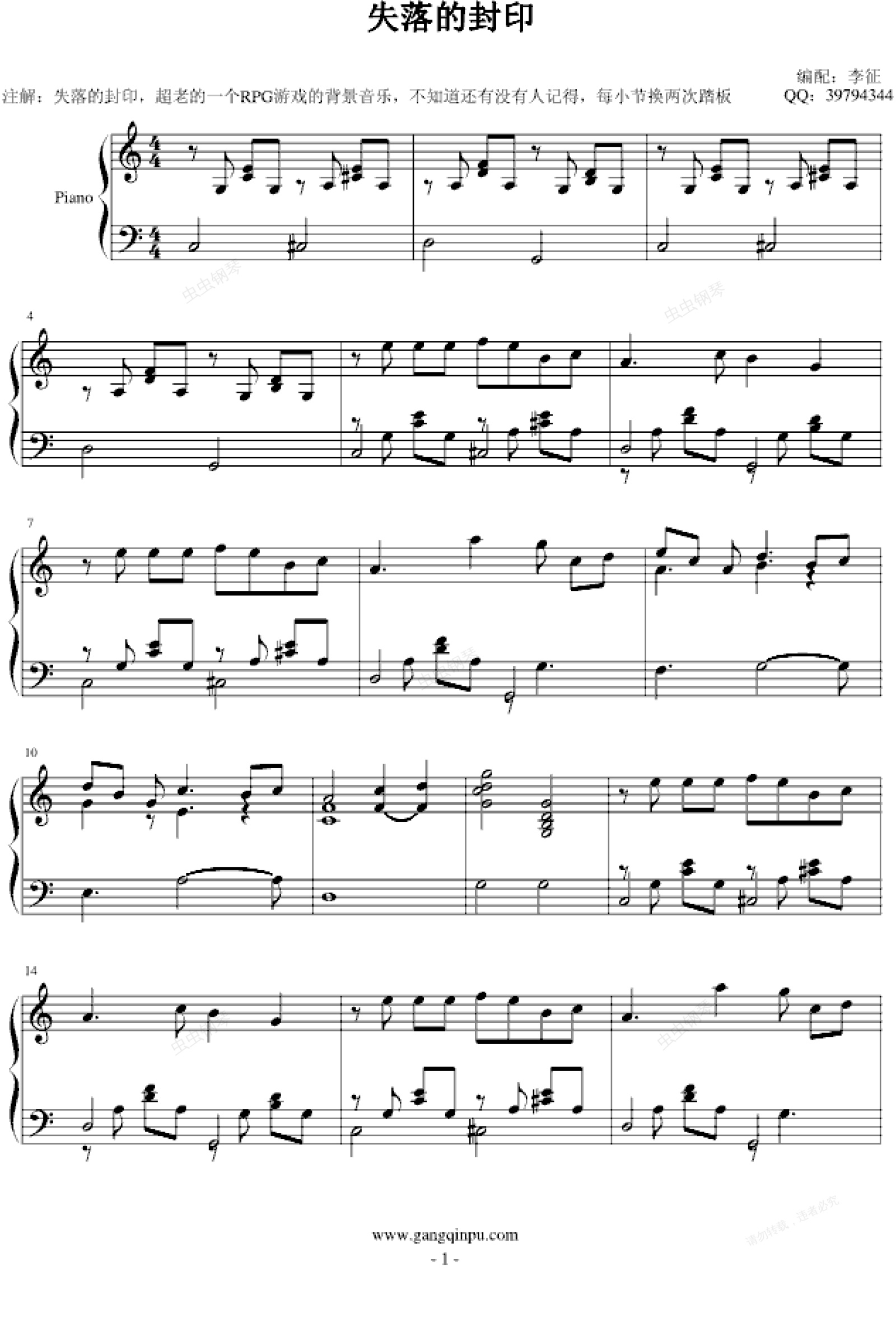 希望此谱能让以前玩过这个游戏的人冒个泡。。。我太想重玩这个游戏了。可惜已经找不到下载,现在下载到的都是已经破坏的。