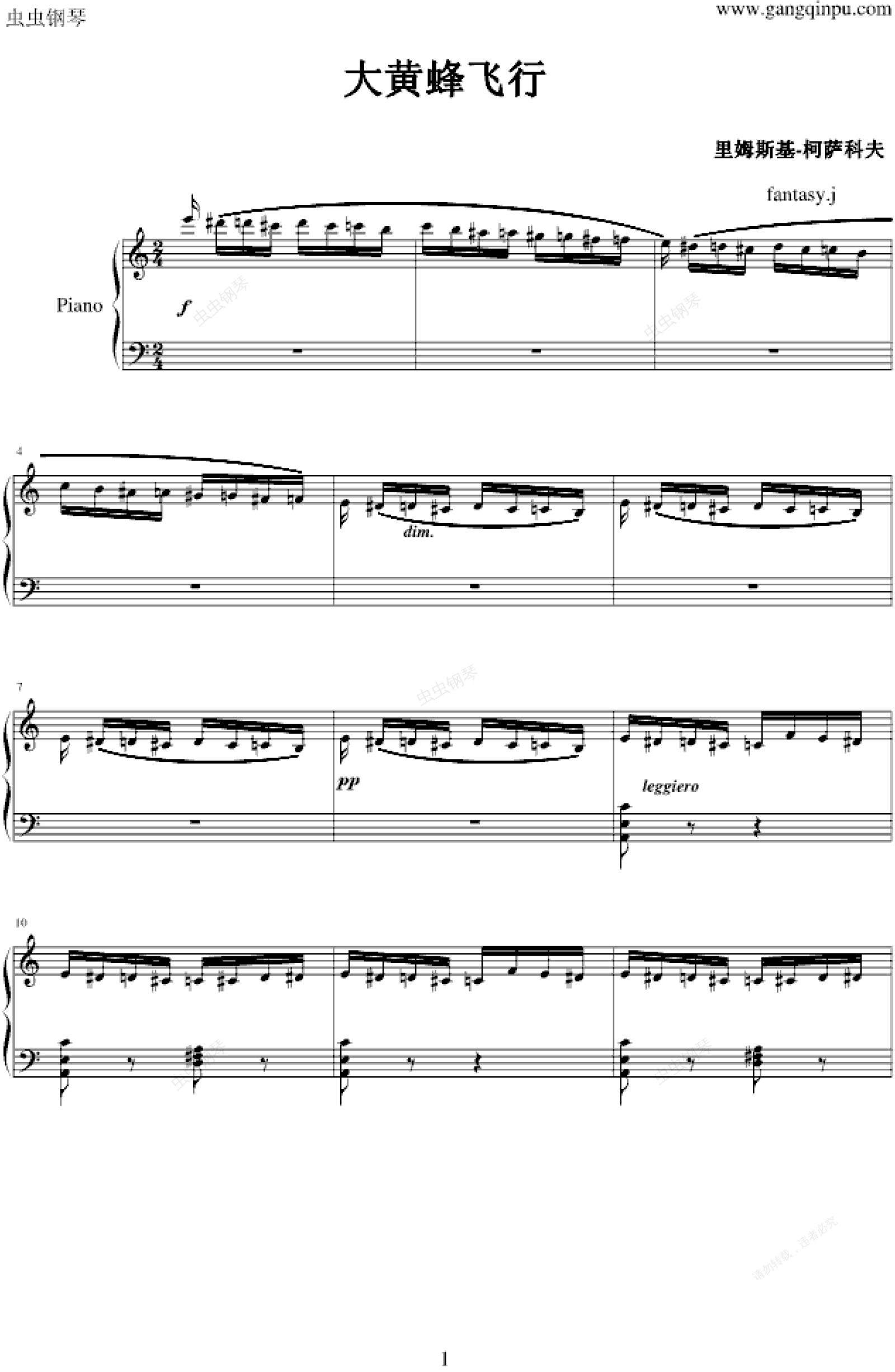 钢琴谱:大黄蜂飞行-fantasy.j版