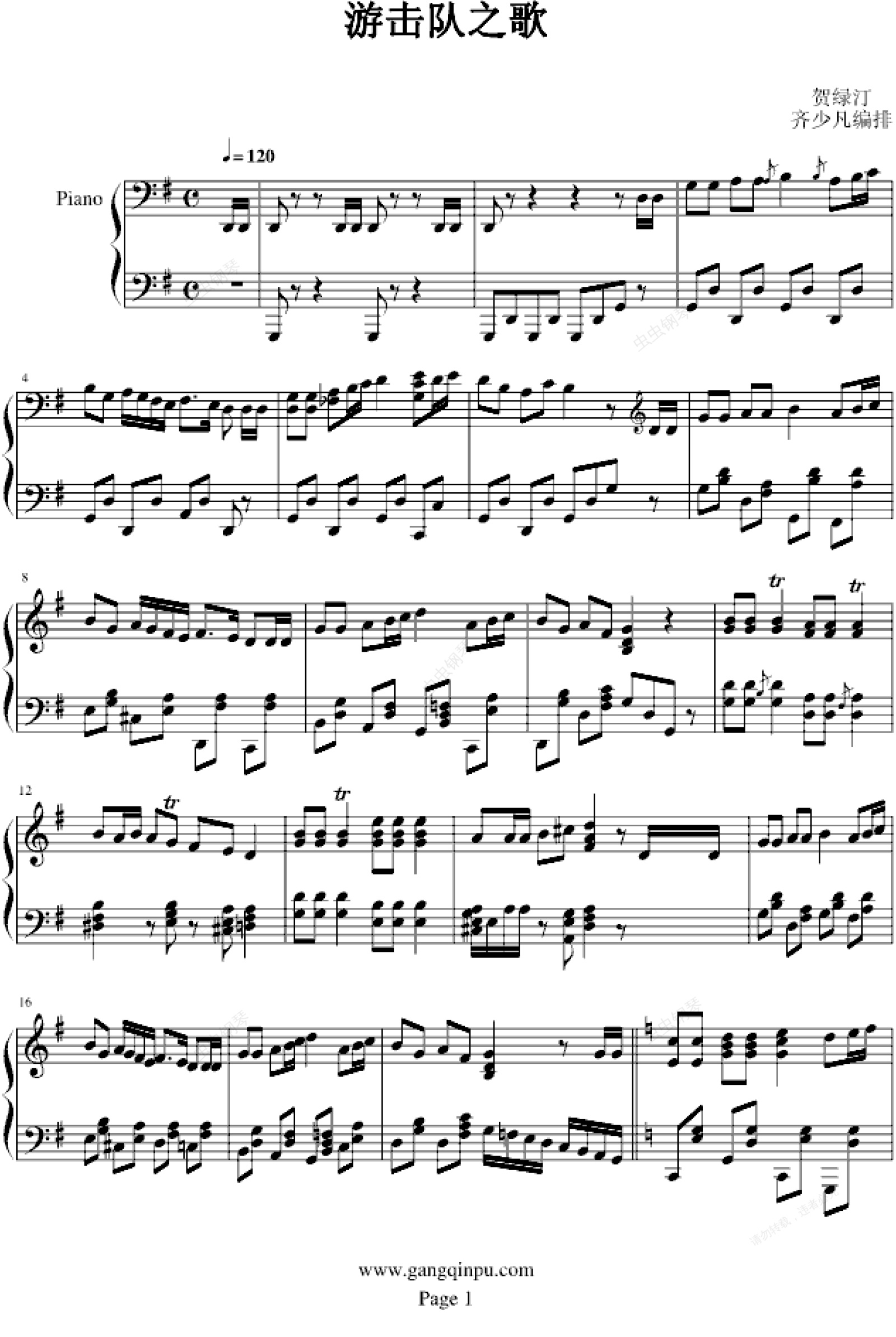 游击队之歌,简单好听,如果没记错,是2级作品。