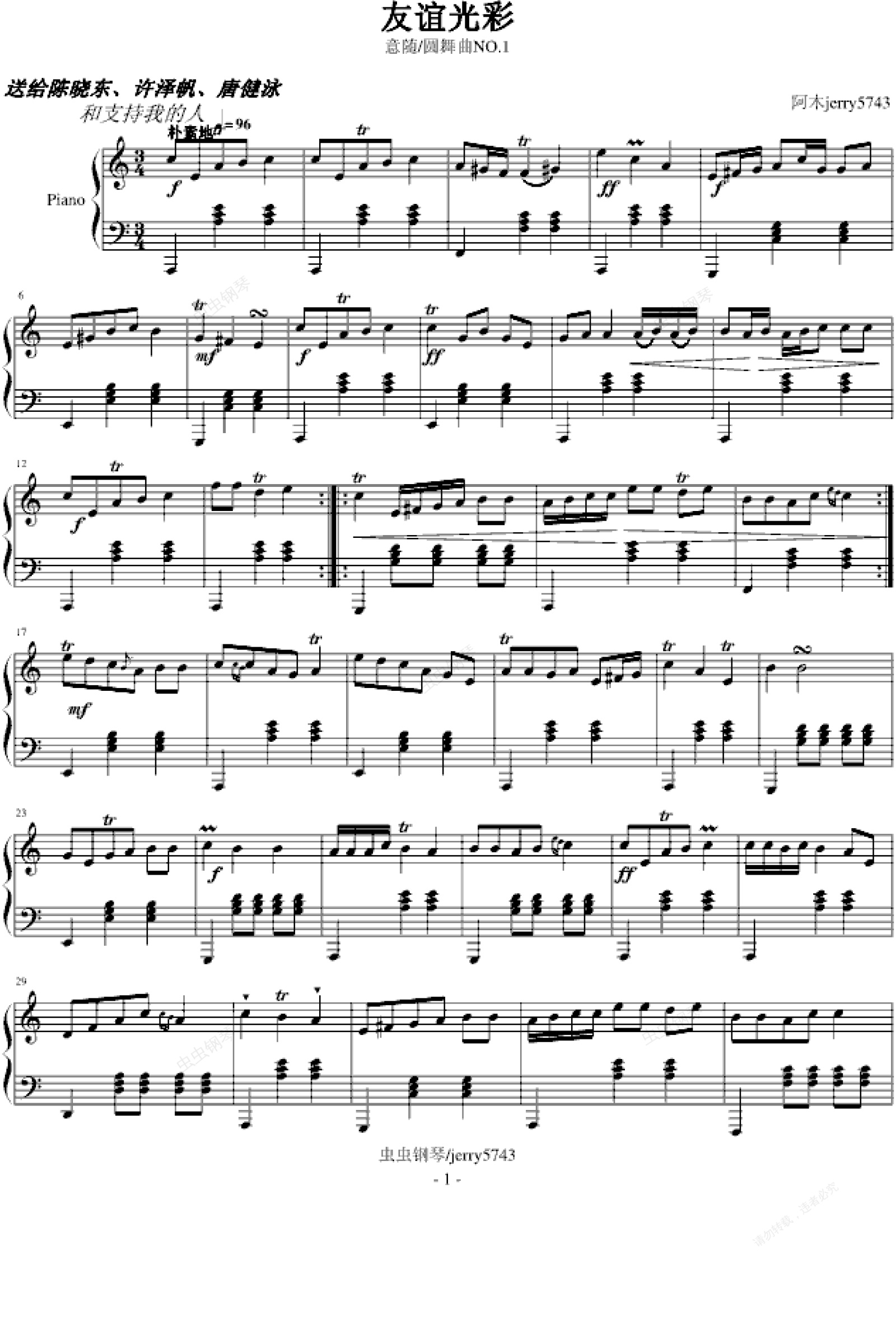 钢琴谱:意随/圆舞曲NO.1友谊光彩