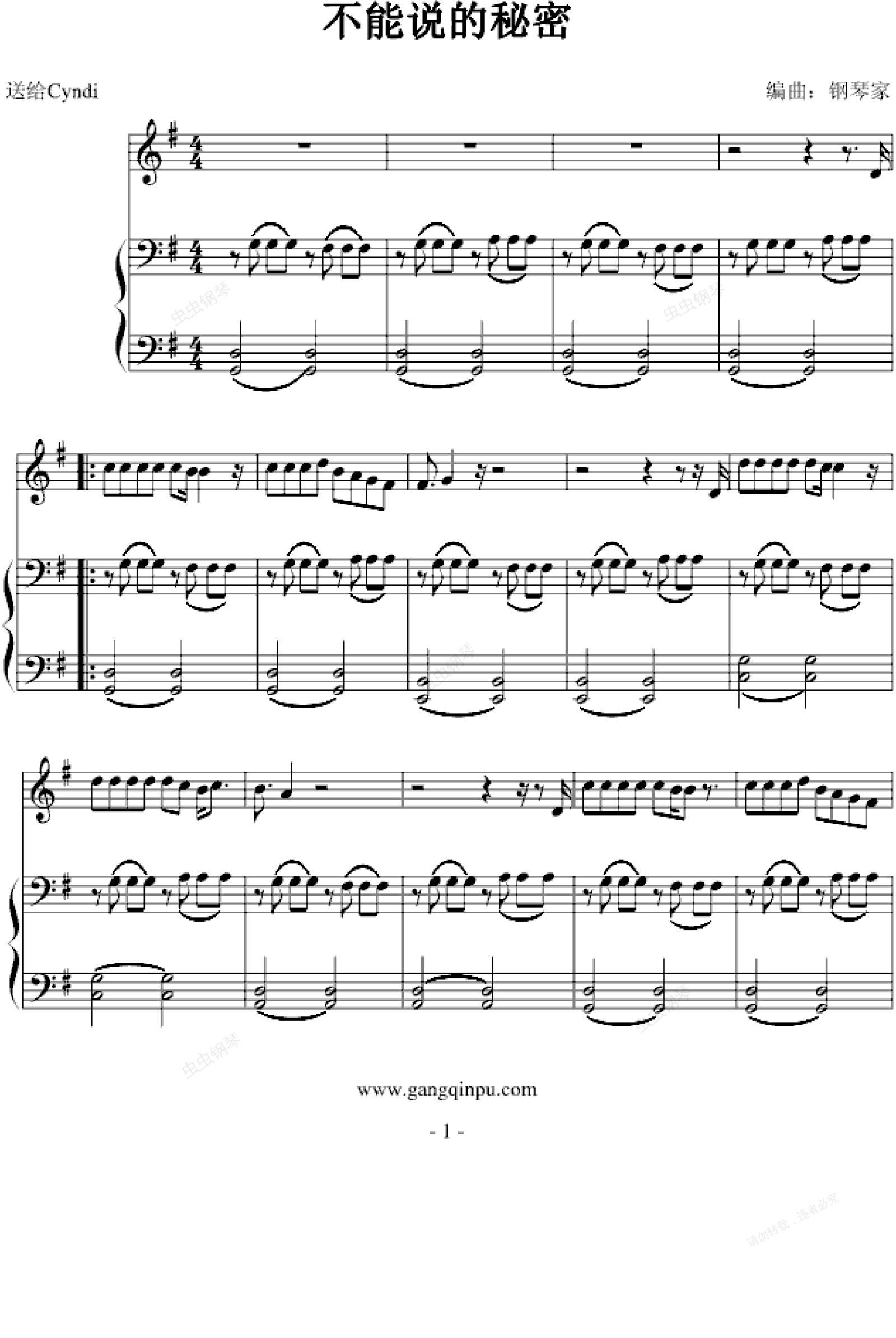 钢琴谱:不能说的秘密-弹唱-正编配版