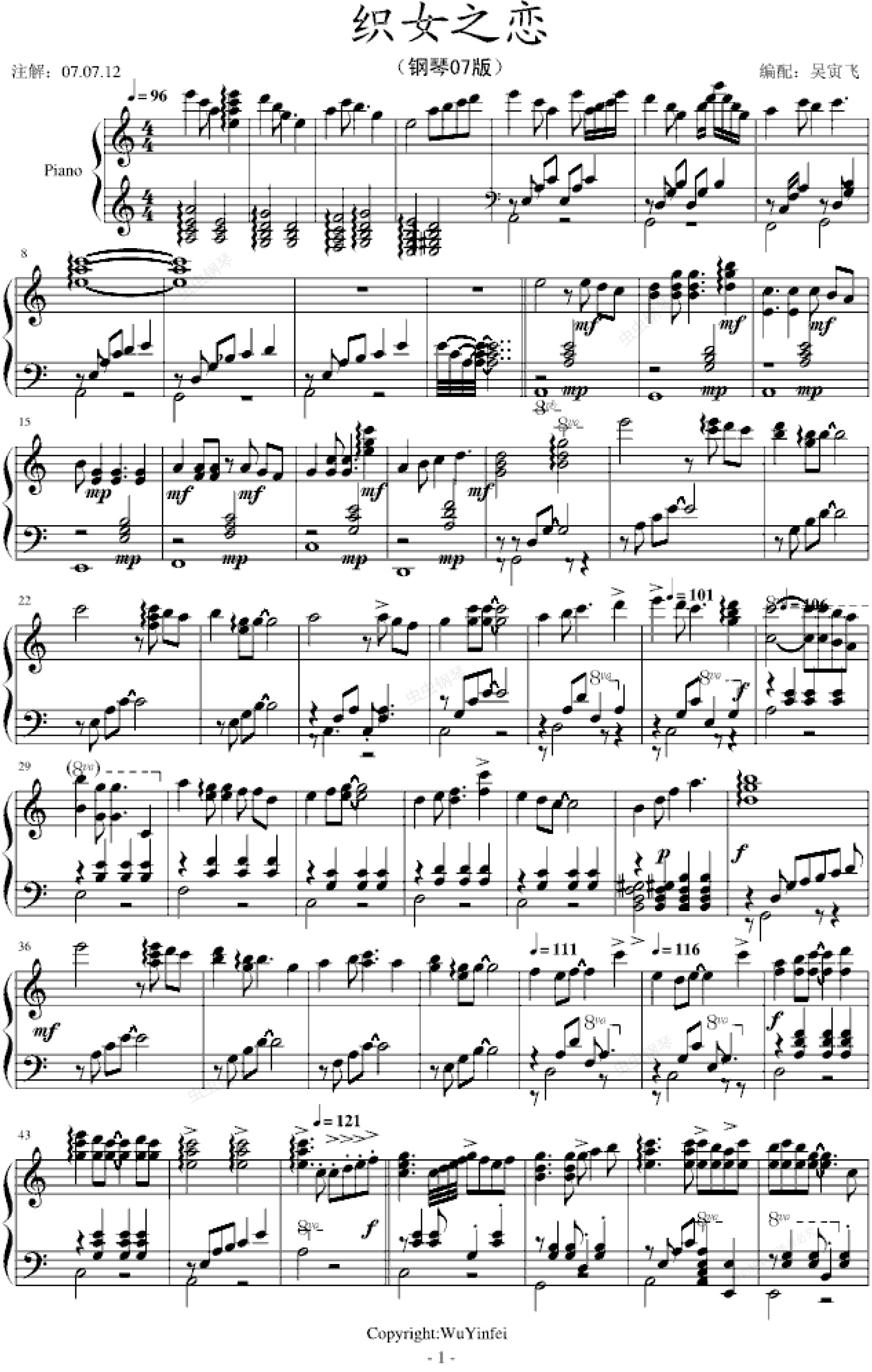 钢琴谱:织女之恋07最新版
