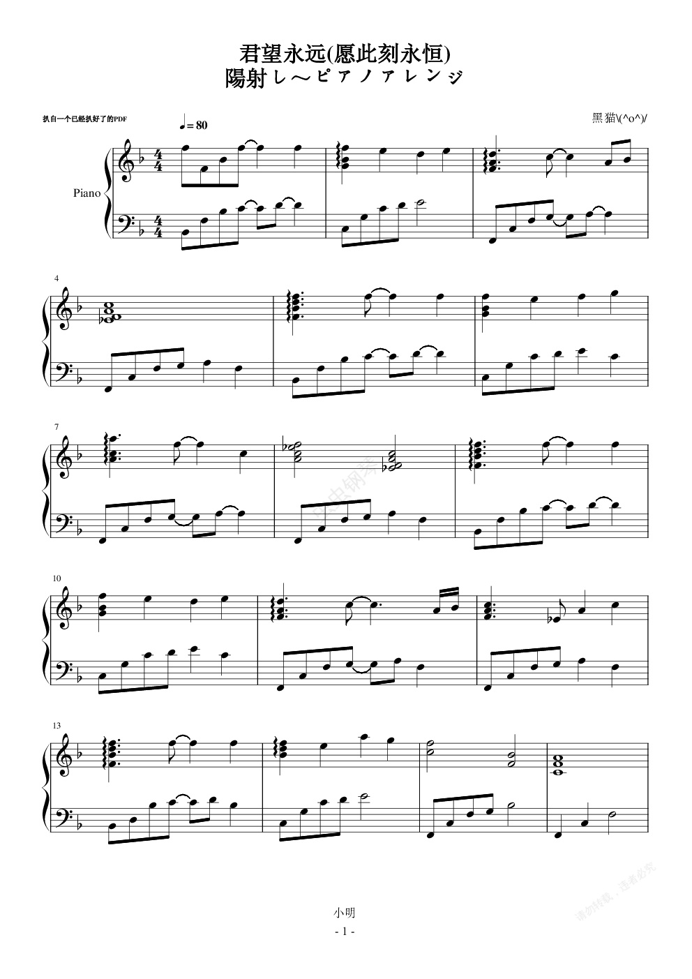 钢琴谱:君望永远 陽射し~ピアノアレンジ