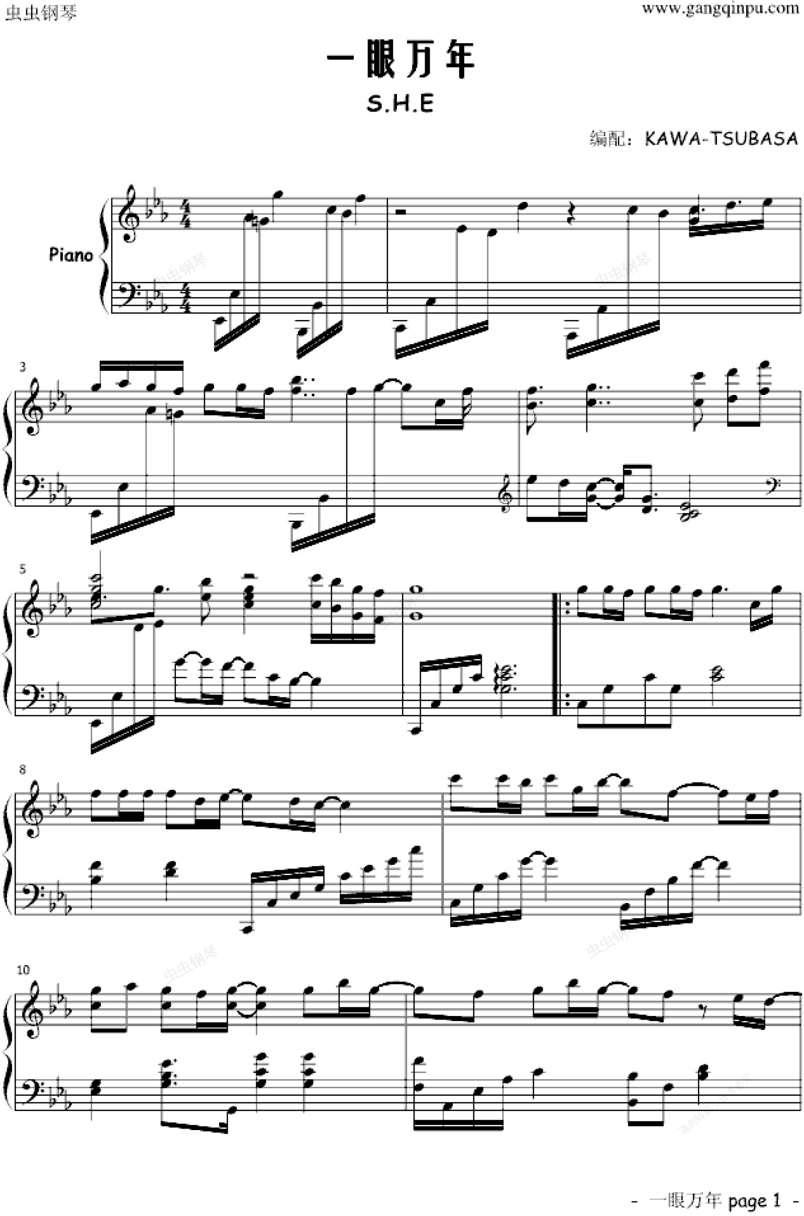 钢琴谱:一眼万年