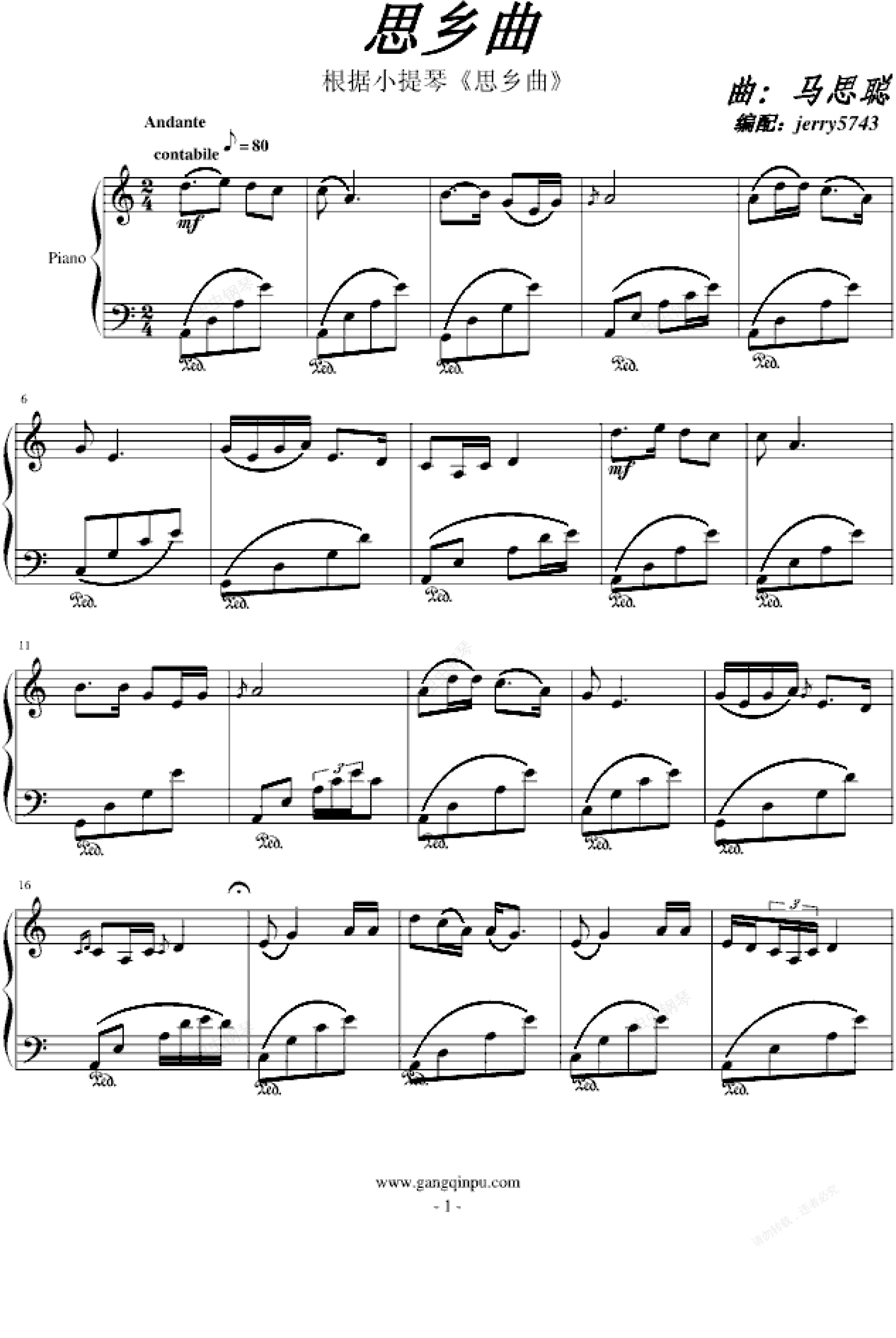根据小提琴《思乡曲》编谱