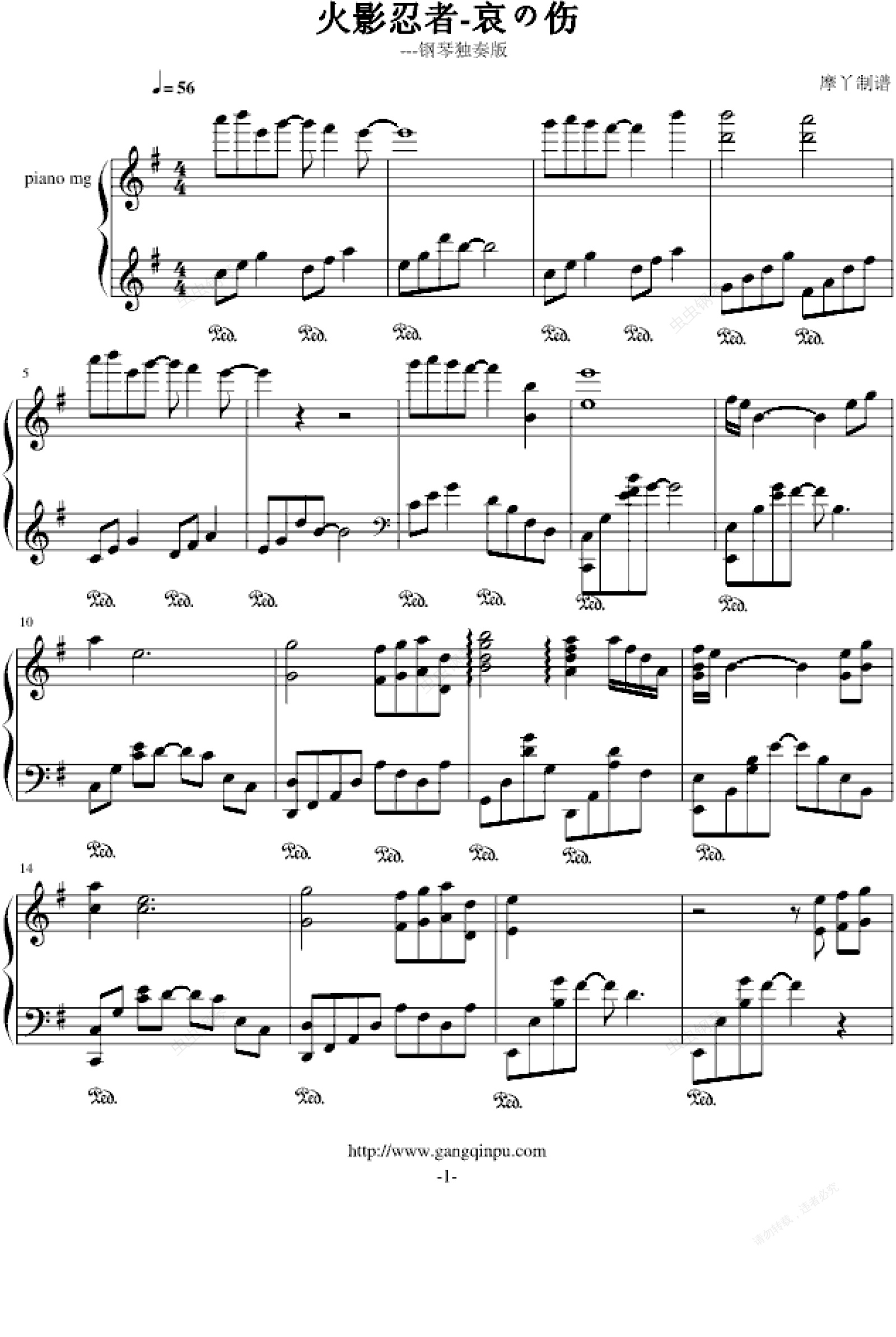 钢琴谱:火影忍者-哀の伤(钢琴独奏版)