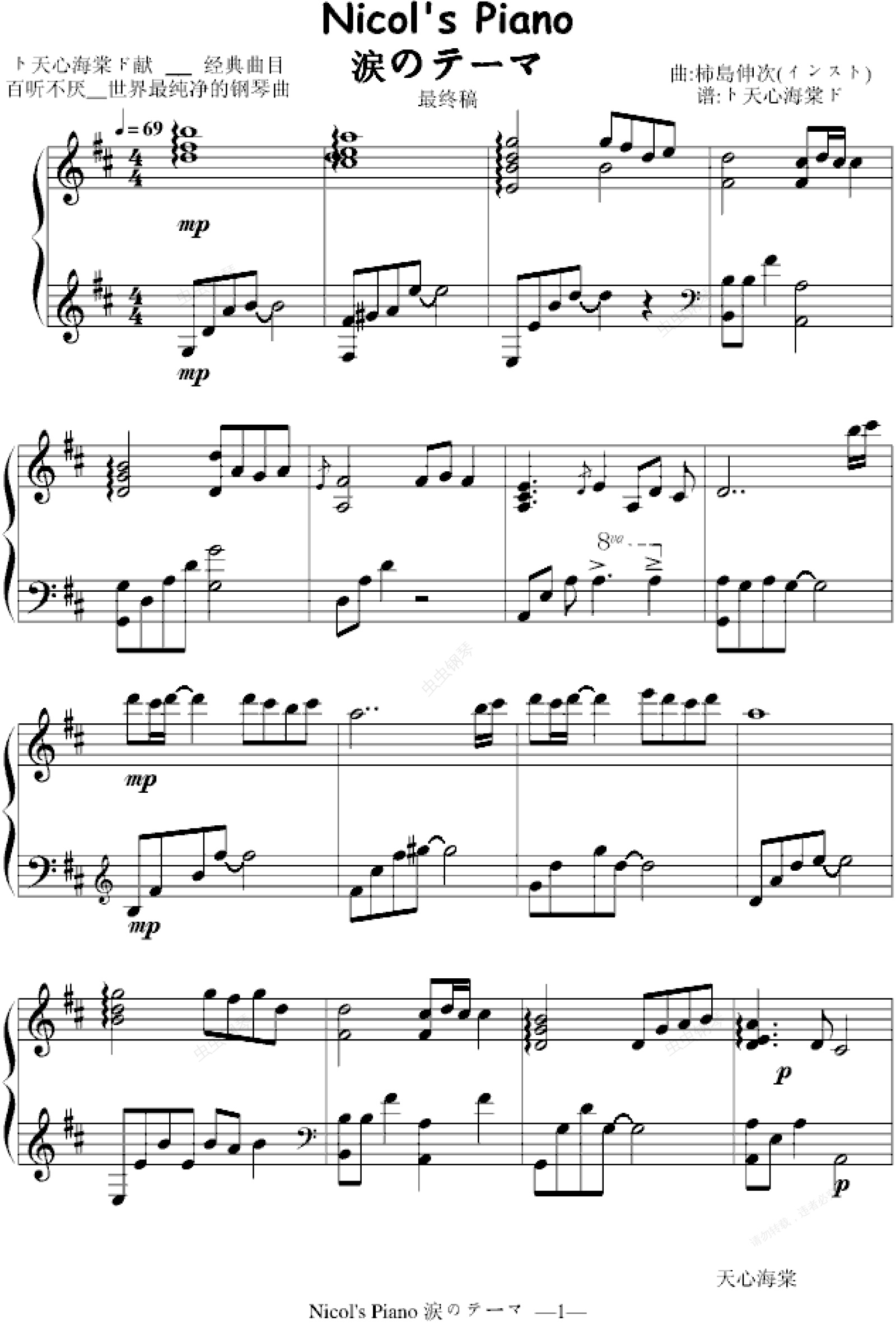 钢琴谱:Nicol's Piano 涙のテーマ(最终稿)