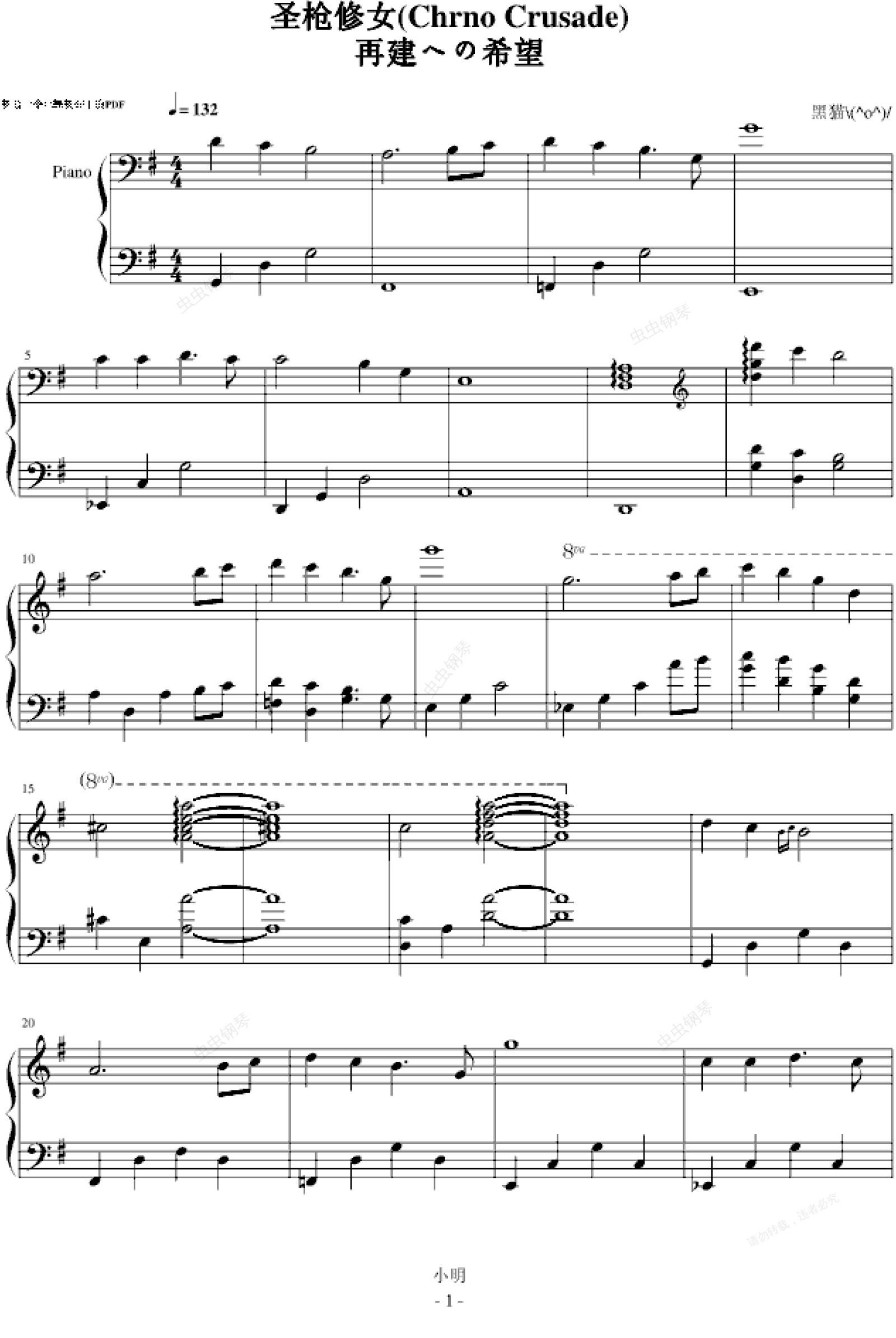 钢琴谱:再建への希望-圣枪修女