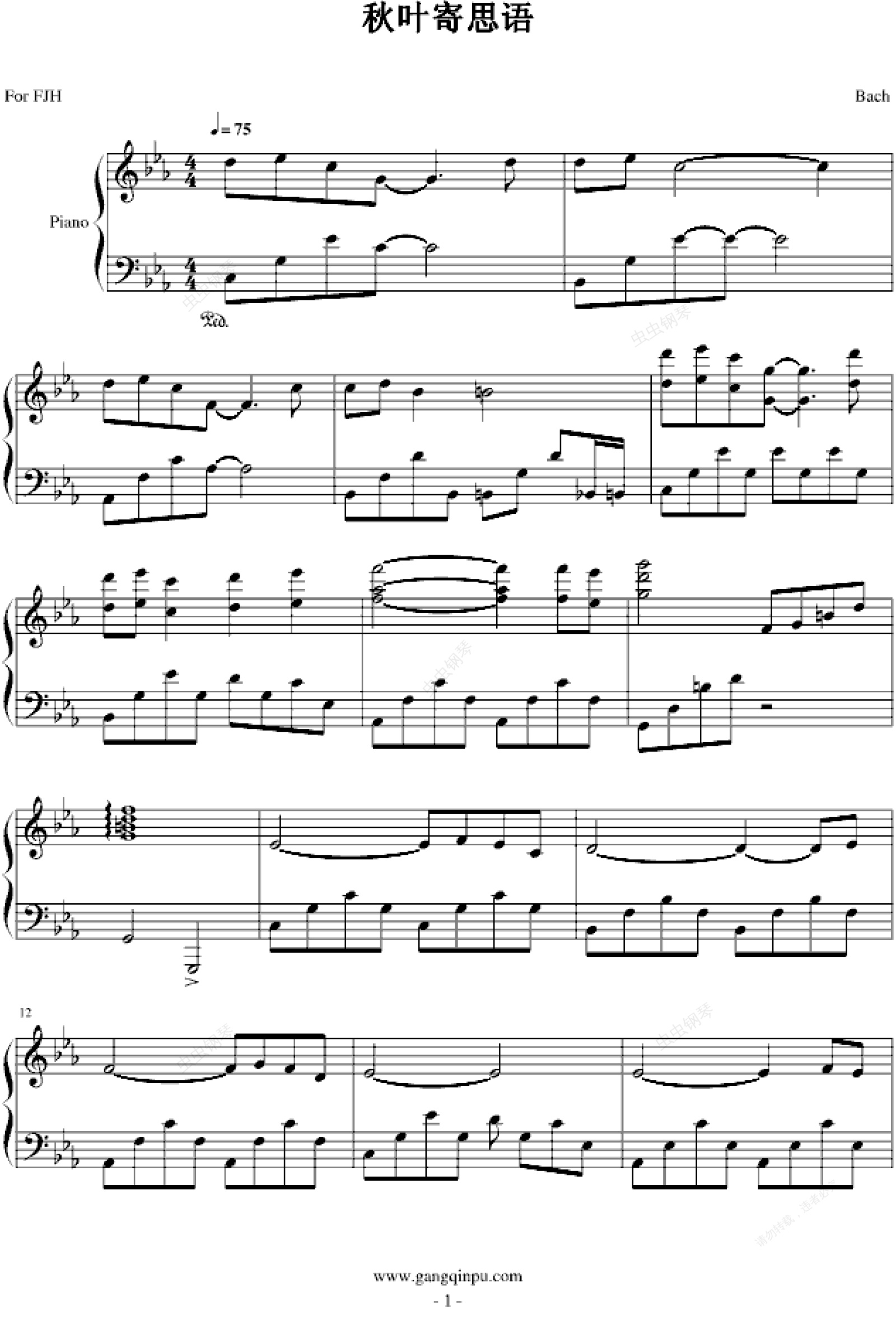 钢琴谱:秋叶寄思语