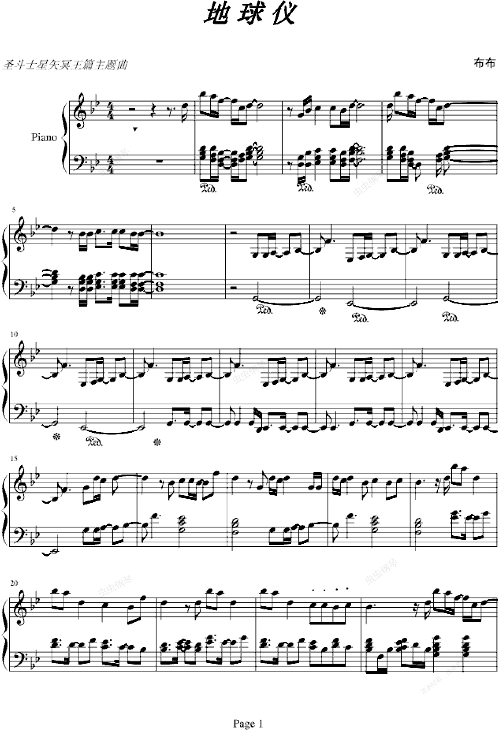 钢琴谱:圣斗士 冥王篇—《地球仪》