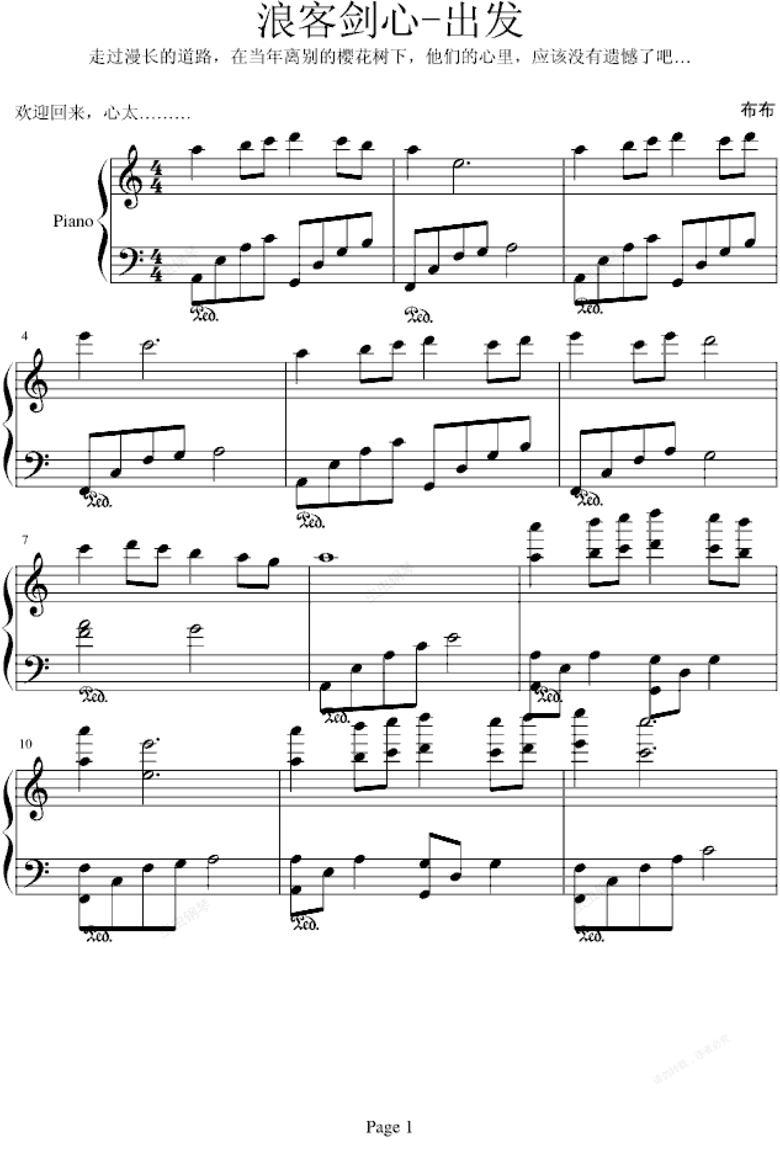 钢琴谱:浪客剑心 -出发