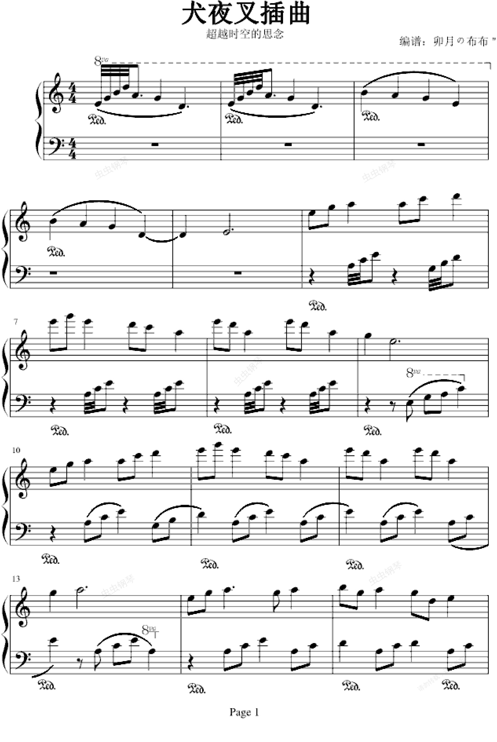 钢琴谱:犬夜叉插曲——超越时空的思念