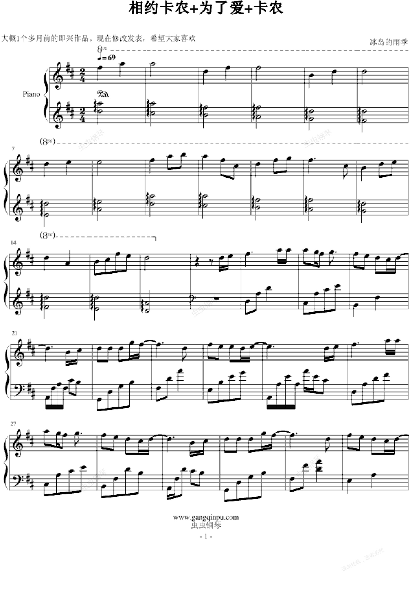 钢琴谱:相约卡农+为了爱+卡农(冰岛的雨季)