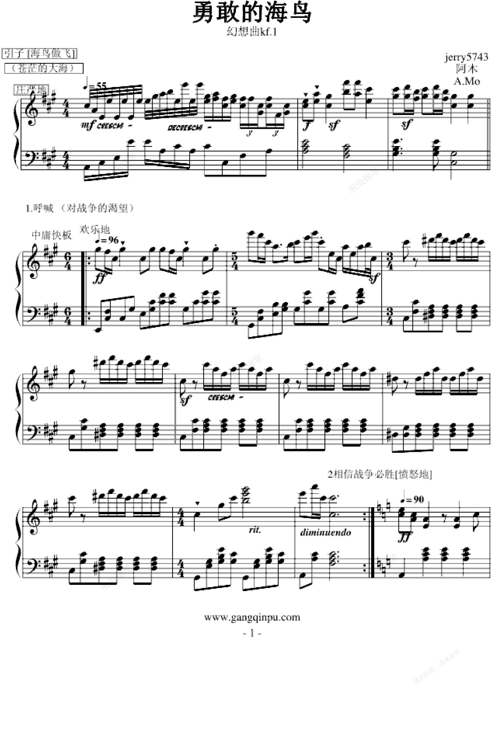钢琴谱:勇敢的海鸟---幻想曲kf.1