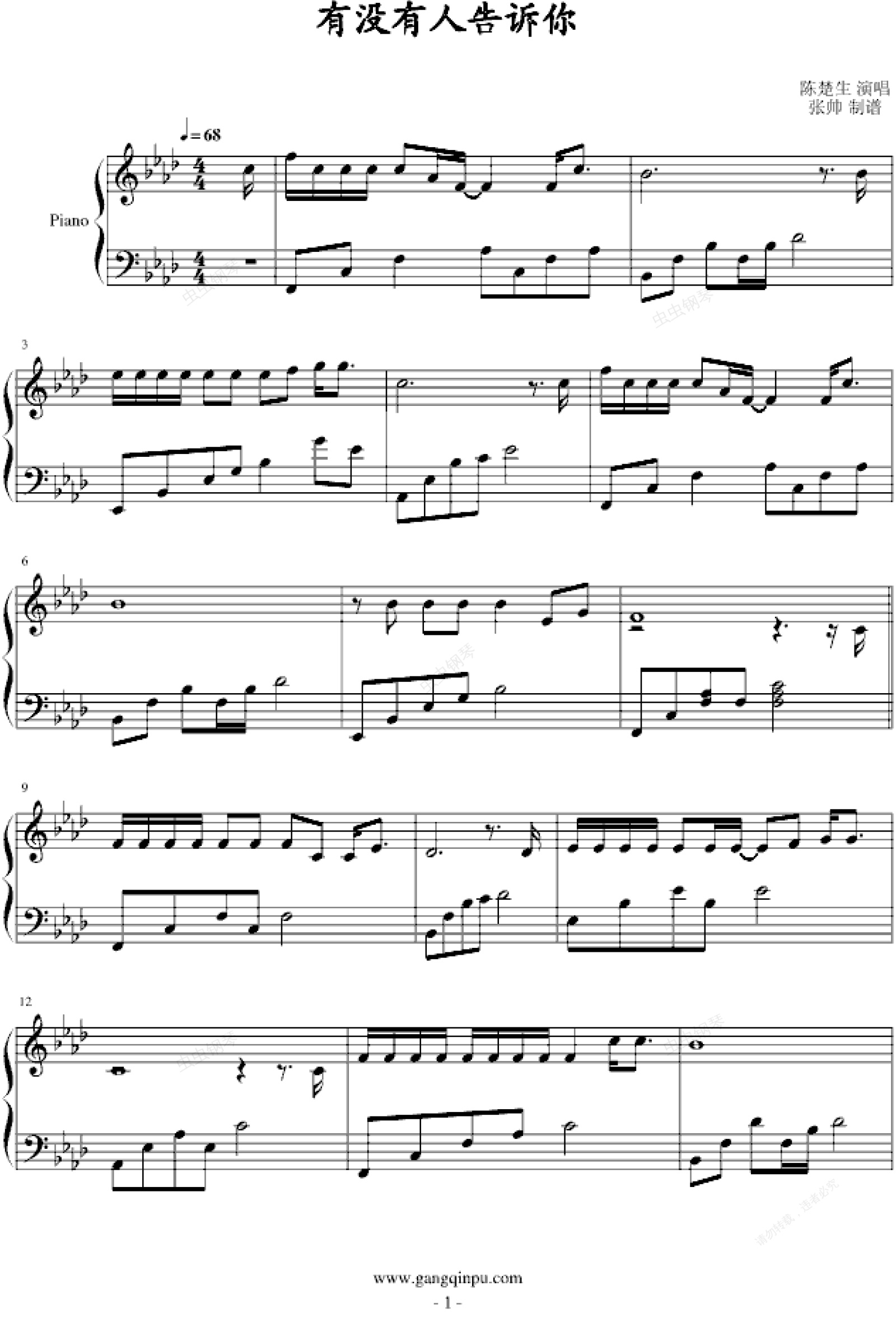 钢琴谱:有没有人告诉你