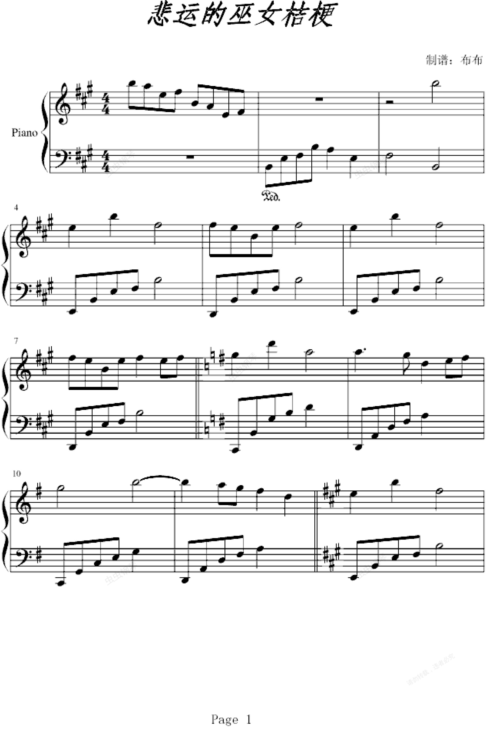 钢琴谱:犬夜叉——悲运的巫女桔梗