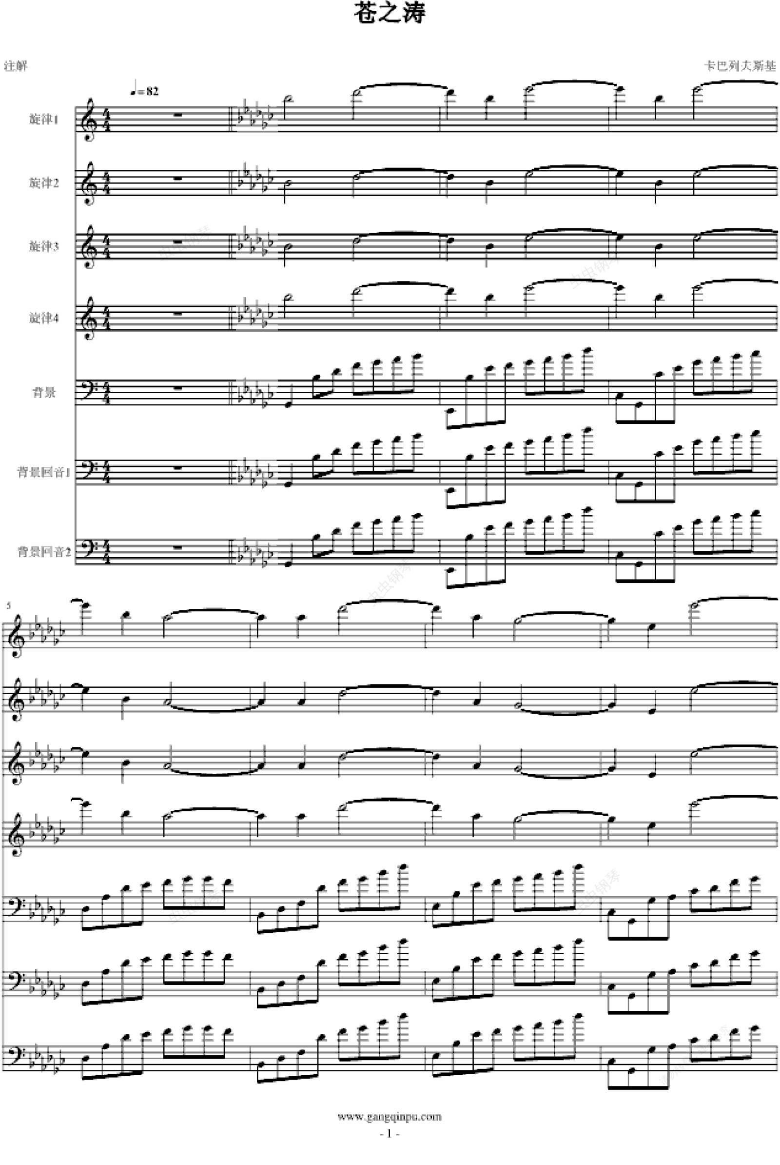 钢琴谱:苍之涛