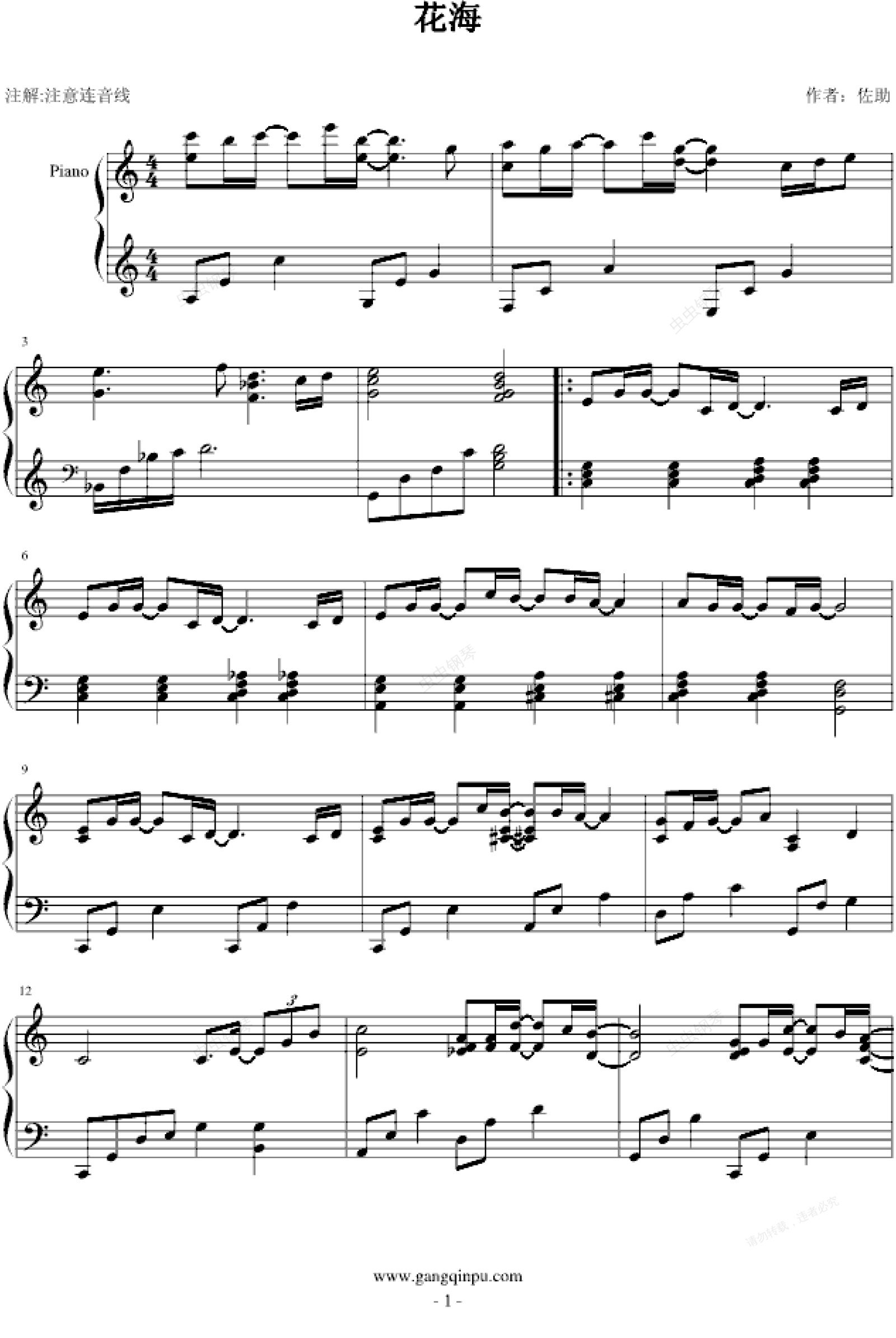 钢琴谱:《皇太子的的初恋》插曲——花海