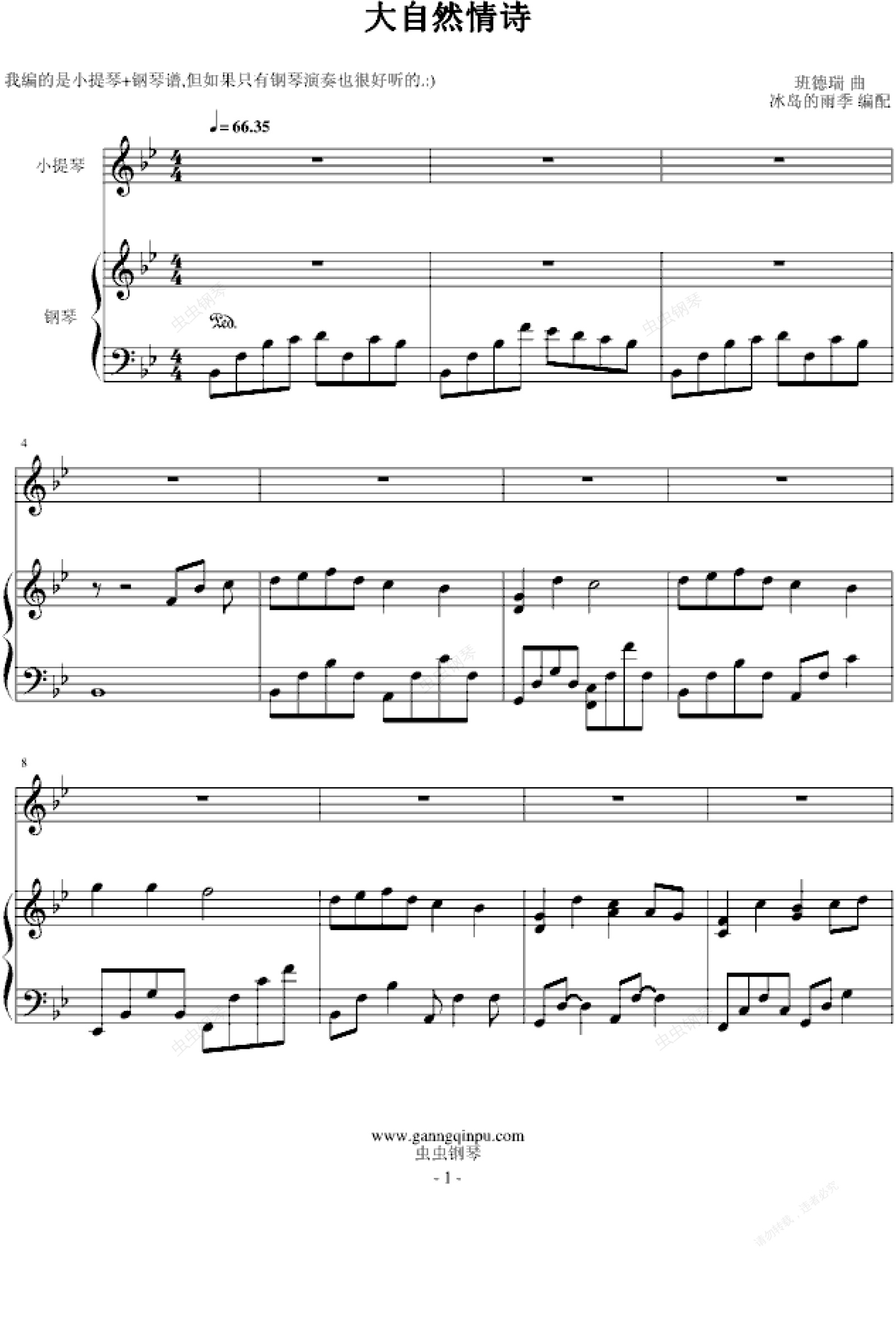 钢琴谱:大自然情诗-冰岛的雨季版