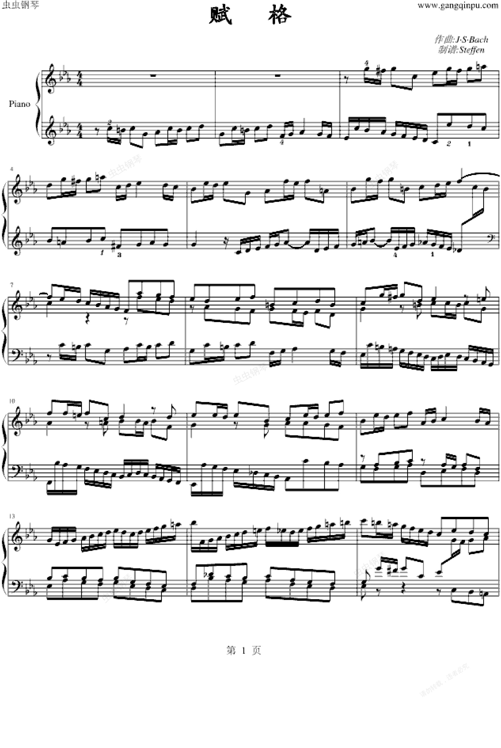 钢琴谱:赋格-(考级版)