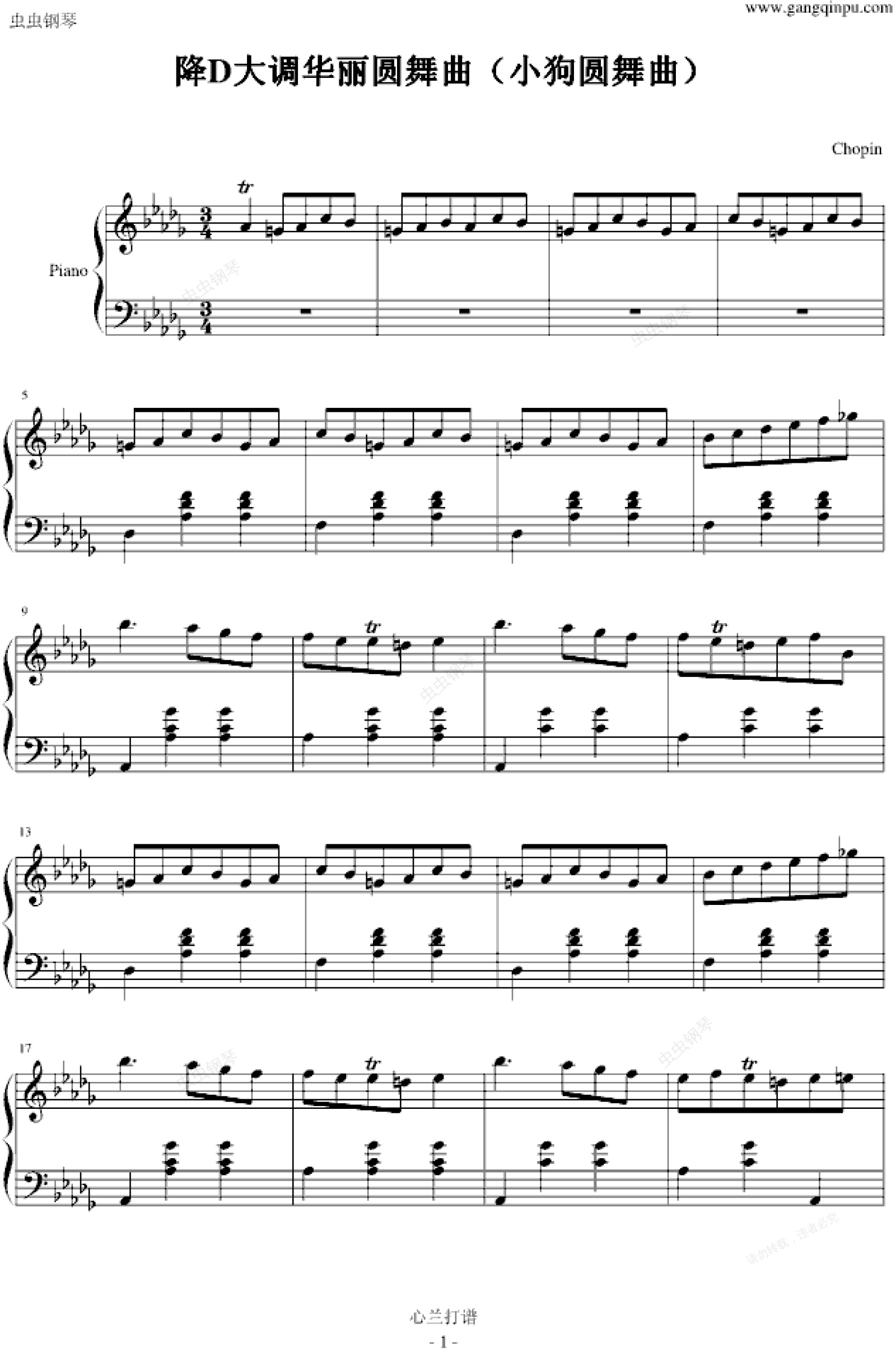 钢琴谱:小狗圆舞曲
