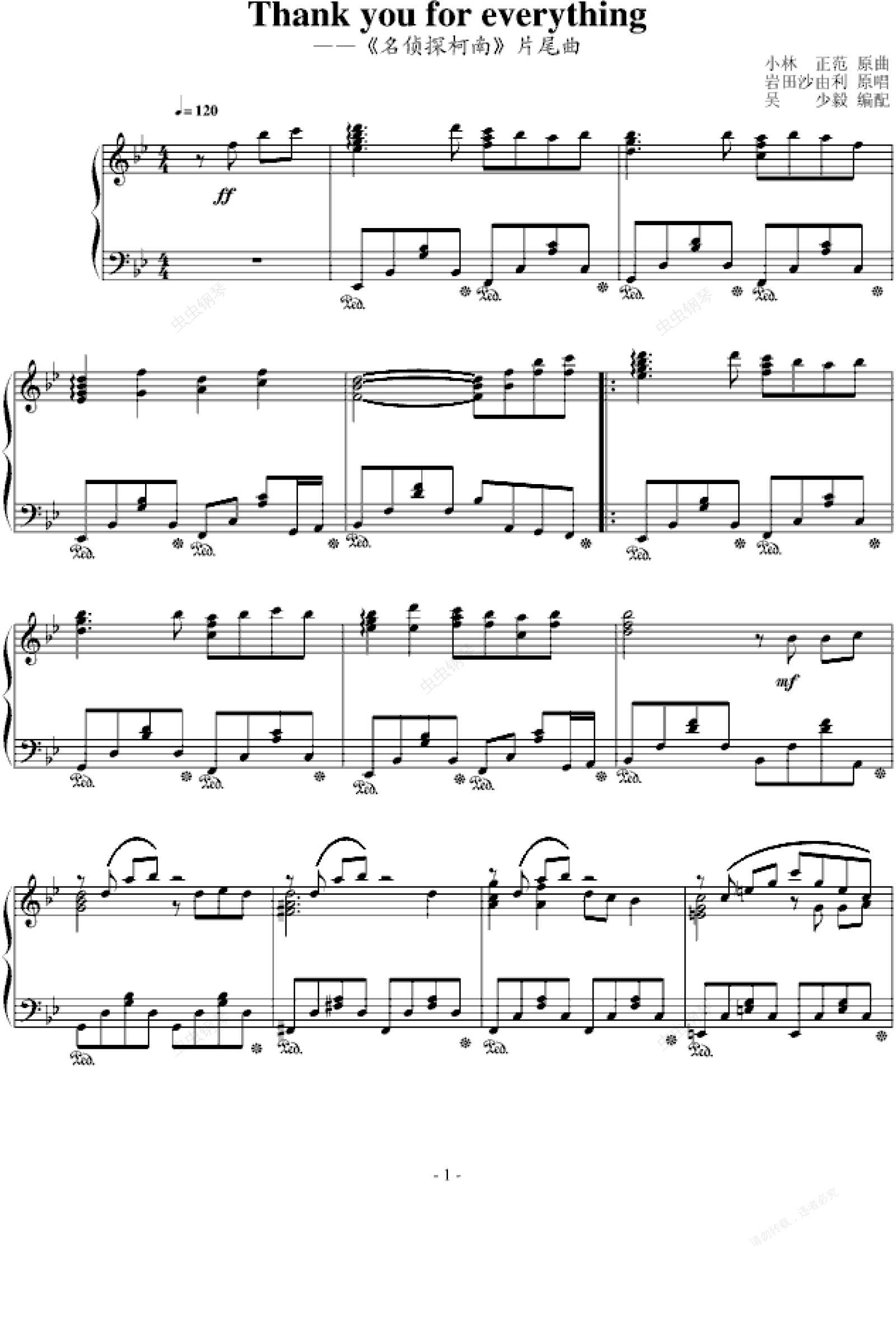 钢琴谱:Thank you for everything