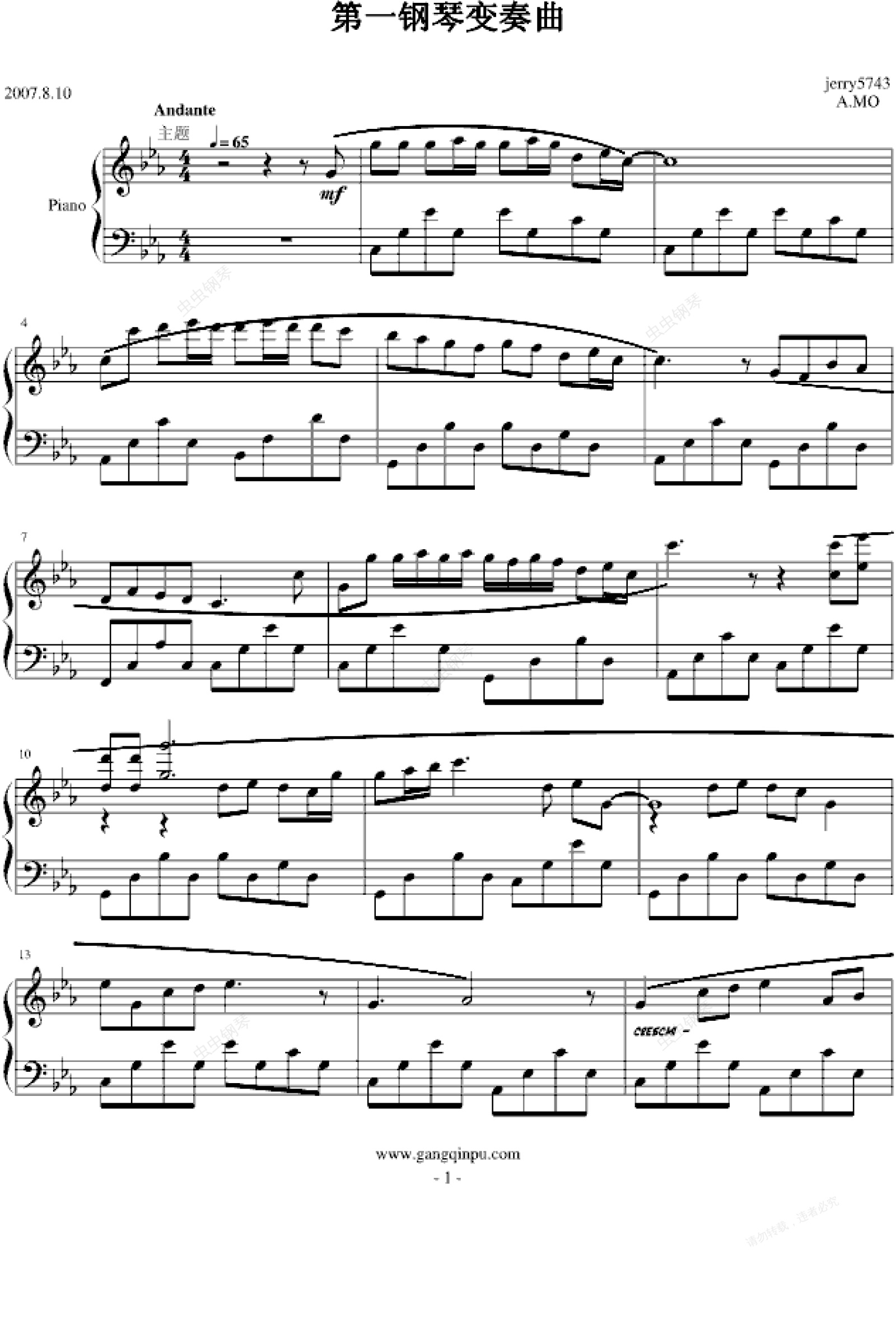 钢琴谱:第一钢琴变奏曲Op.1.2-1(070801)