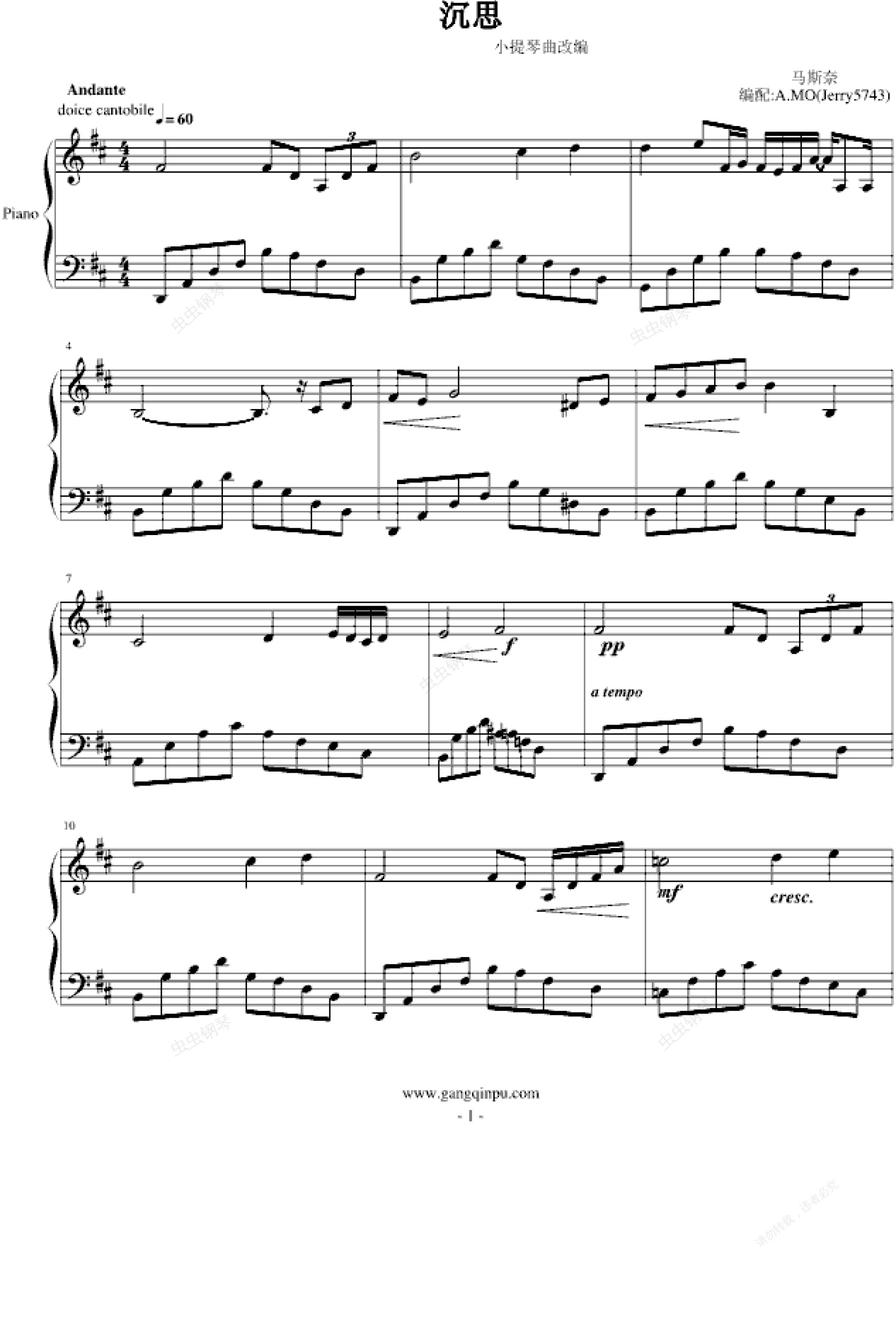 马斯奈《沉思》,原曲为马斯奈的歌剧《泰伊思》第二幕第一场与第二场中间所奏的间奏曲,故又称为"泰伊思冥想曲",常被单独演奏,成为小提琴独奏曲中经久不衰的名篇,也是马斯奈的代表作品。