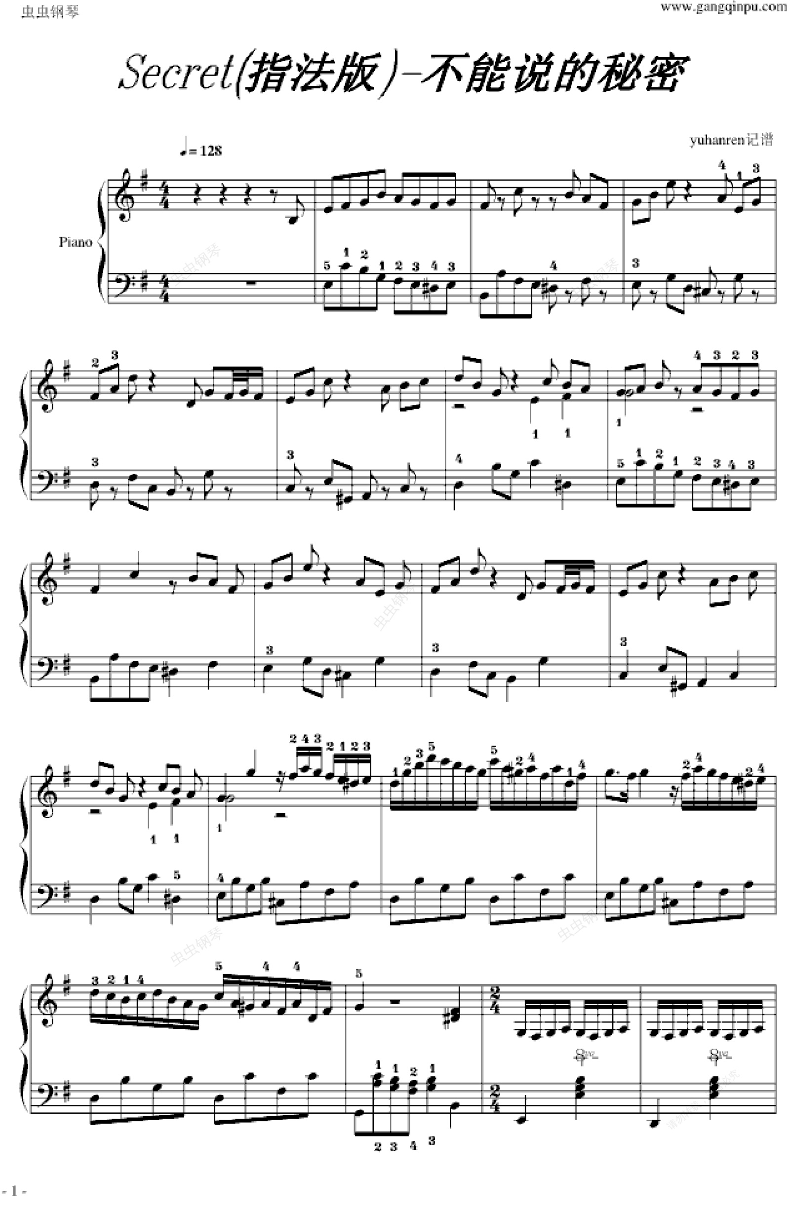钢琴谱:Secret-(指法版)-不能说的秘密