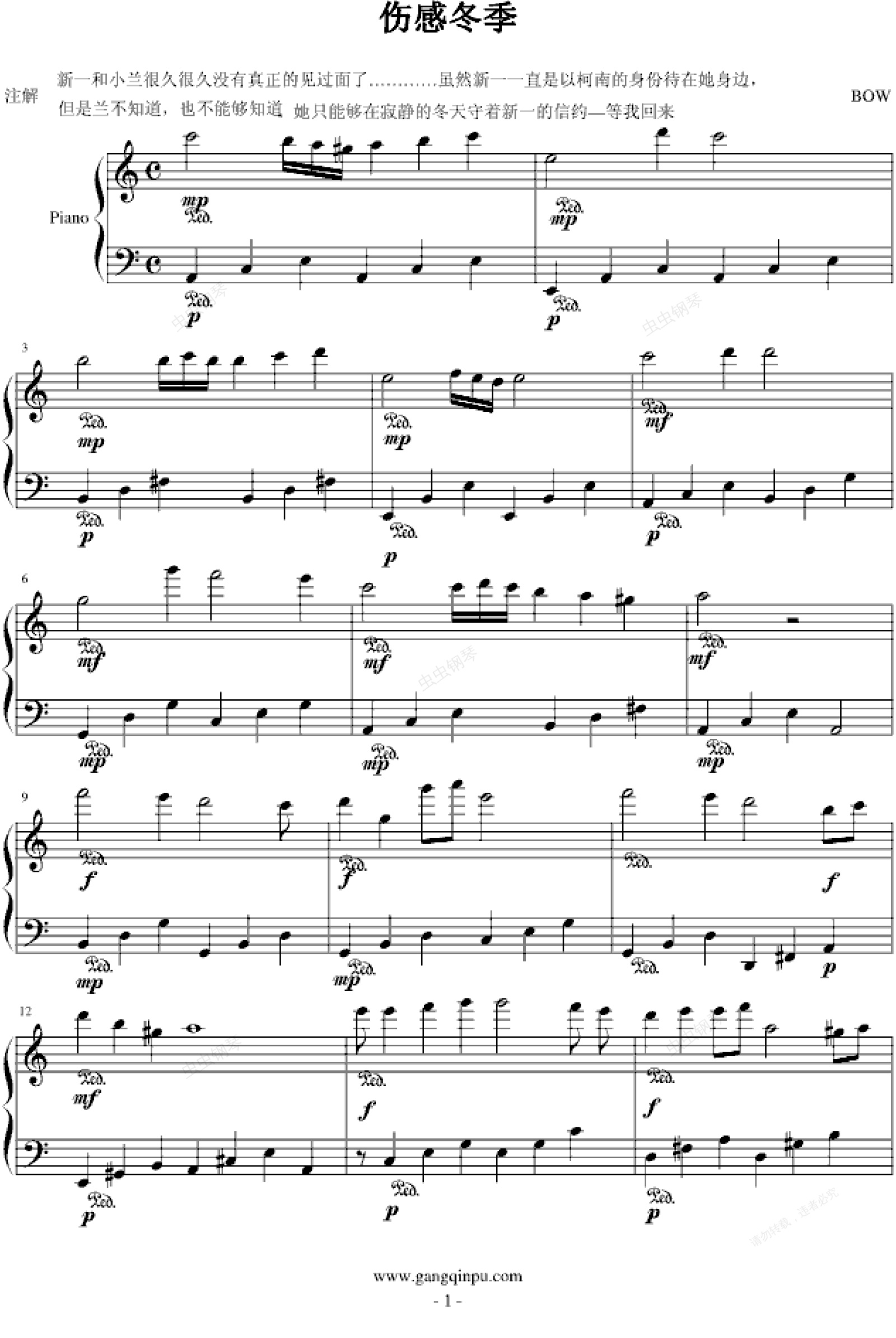 钢琴谱:伤感冬季