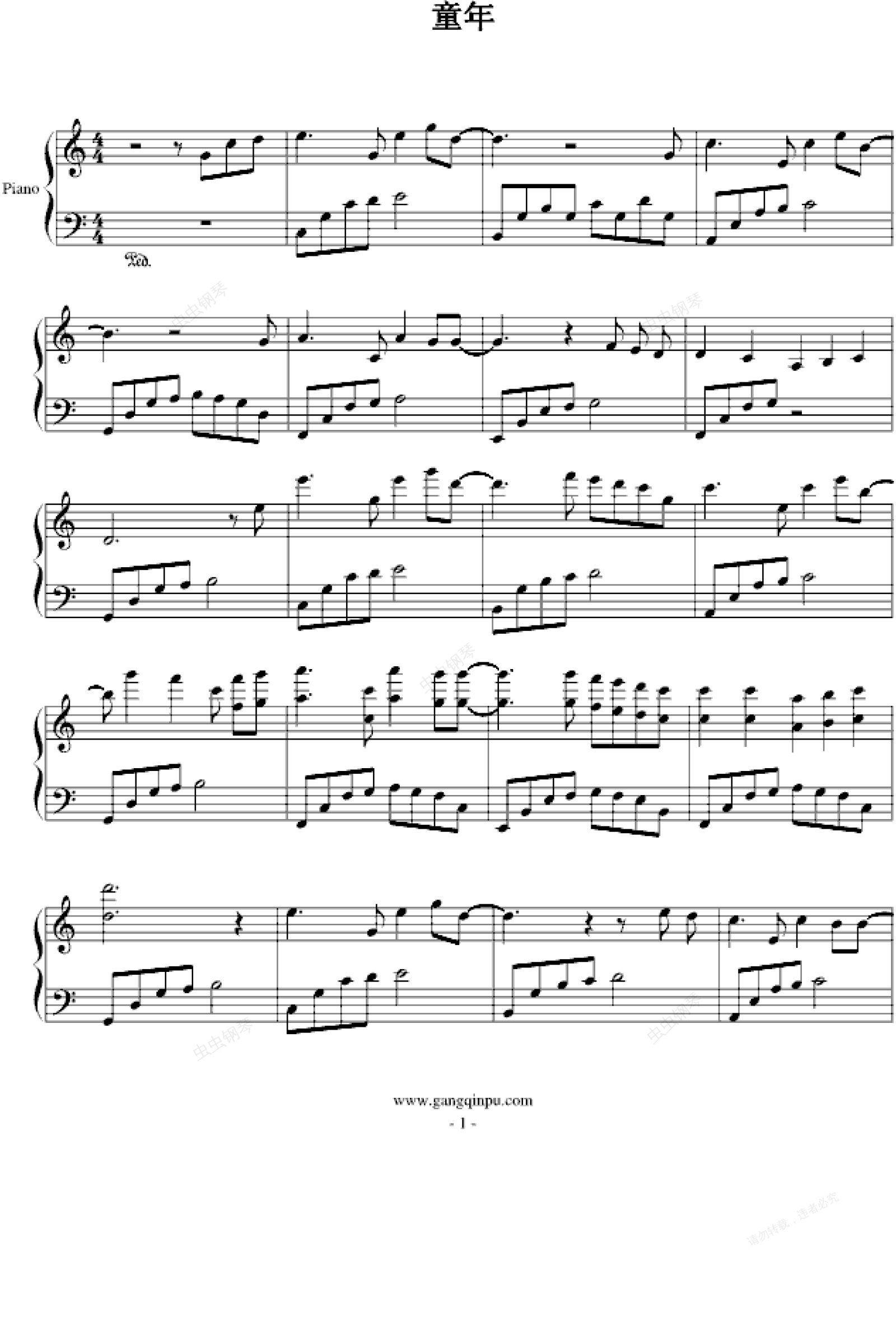 钢琴谱:童年