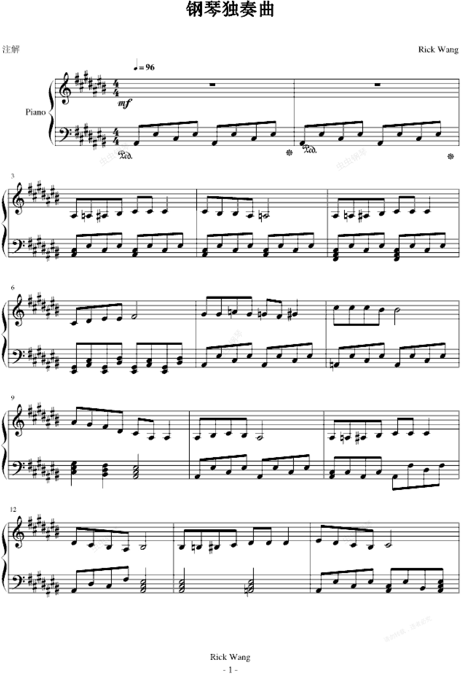 钢琴谱:钢琴独奏曲