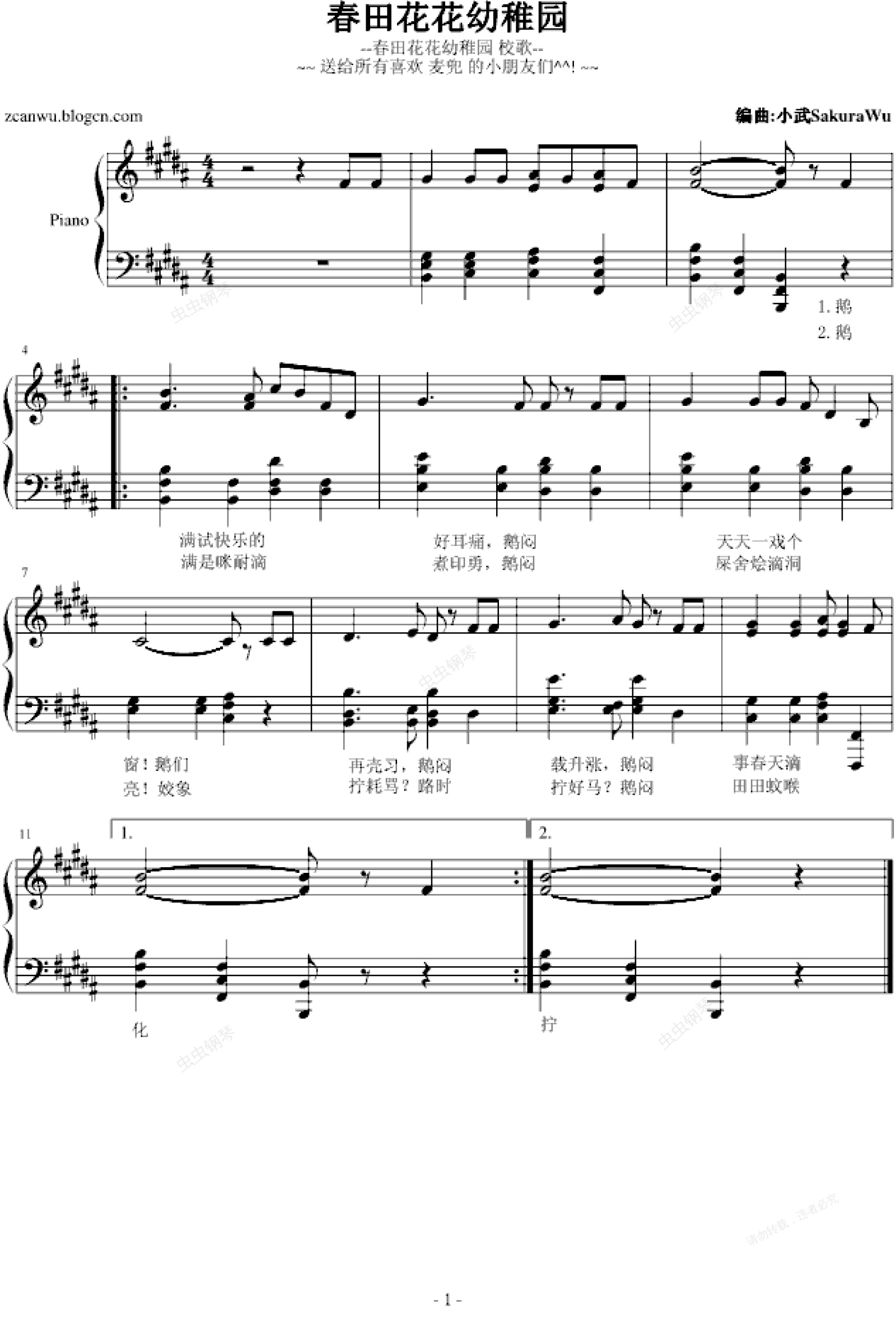 钢琴谱:<<春田花花幼稚园>> 麦兜 ----小武Sakura编
