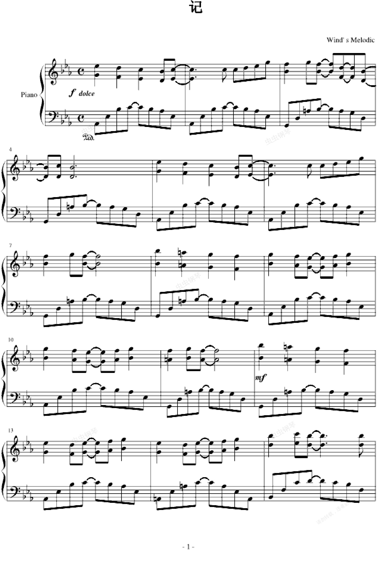 钢琴谱:夕暮(网球王子插曲)