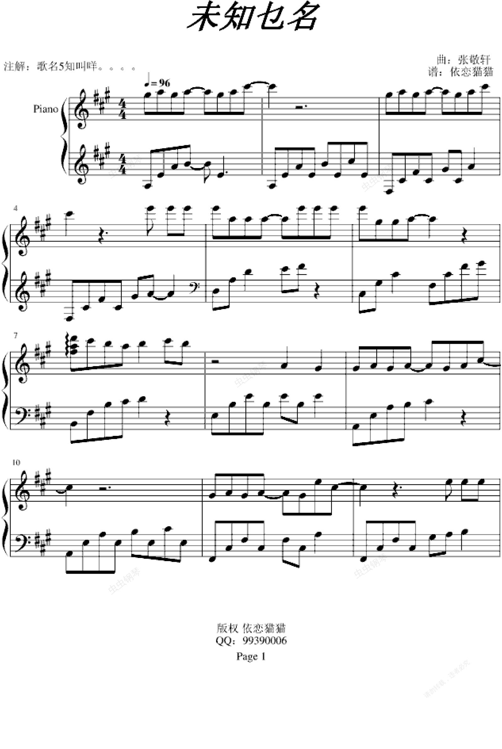 钢琴谱:张敬轩-电影《十分爱》钢琴插曲