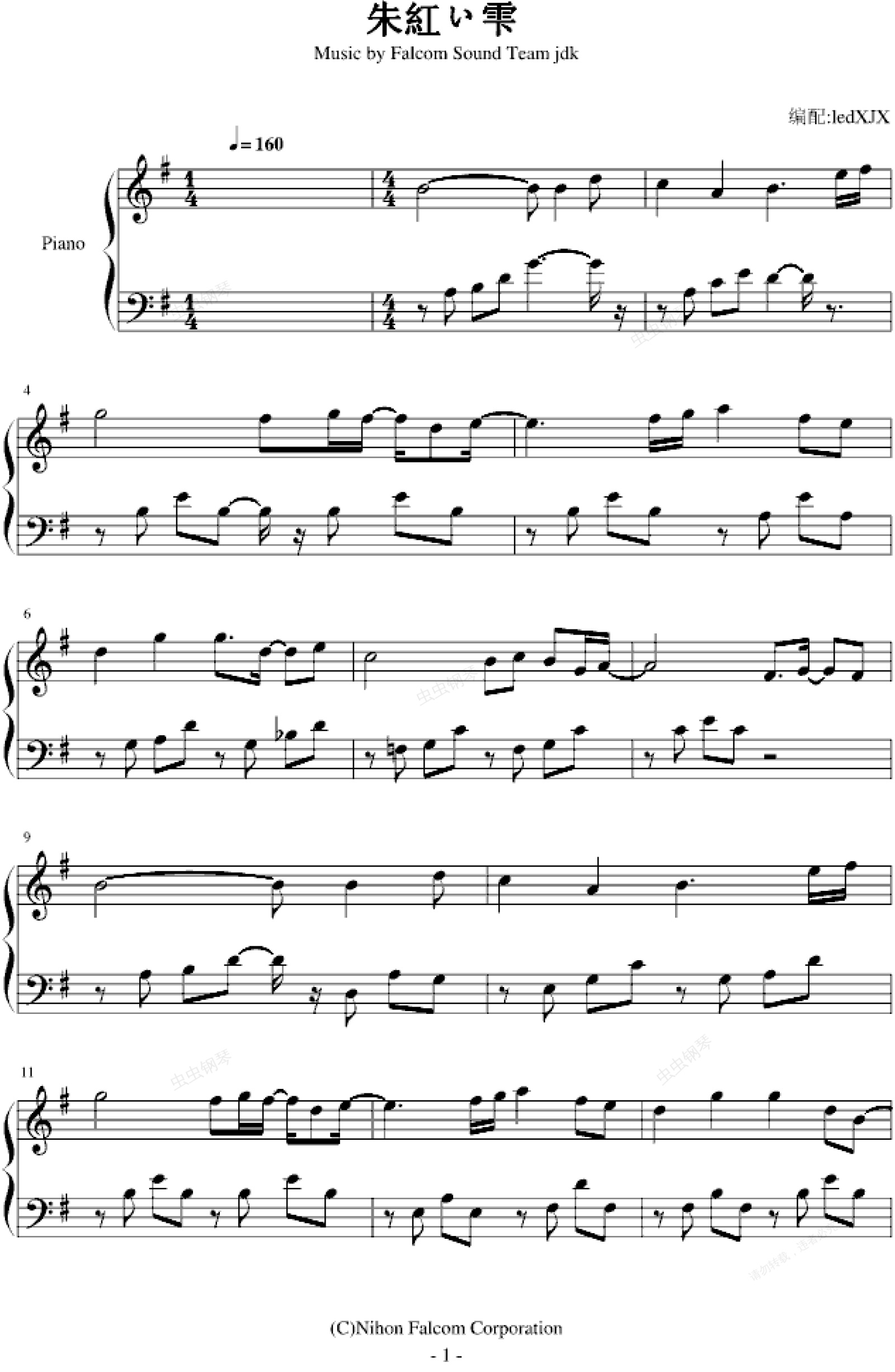 钢琴谱:英雄传说4朱红的泪主题变奏曲