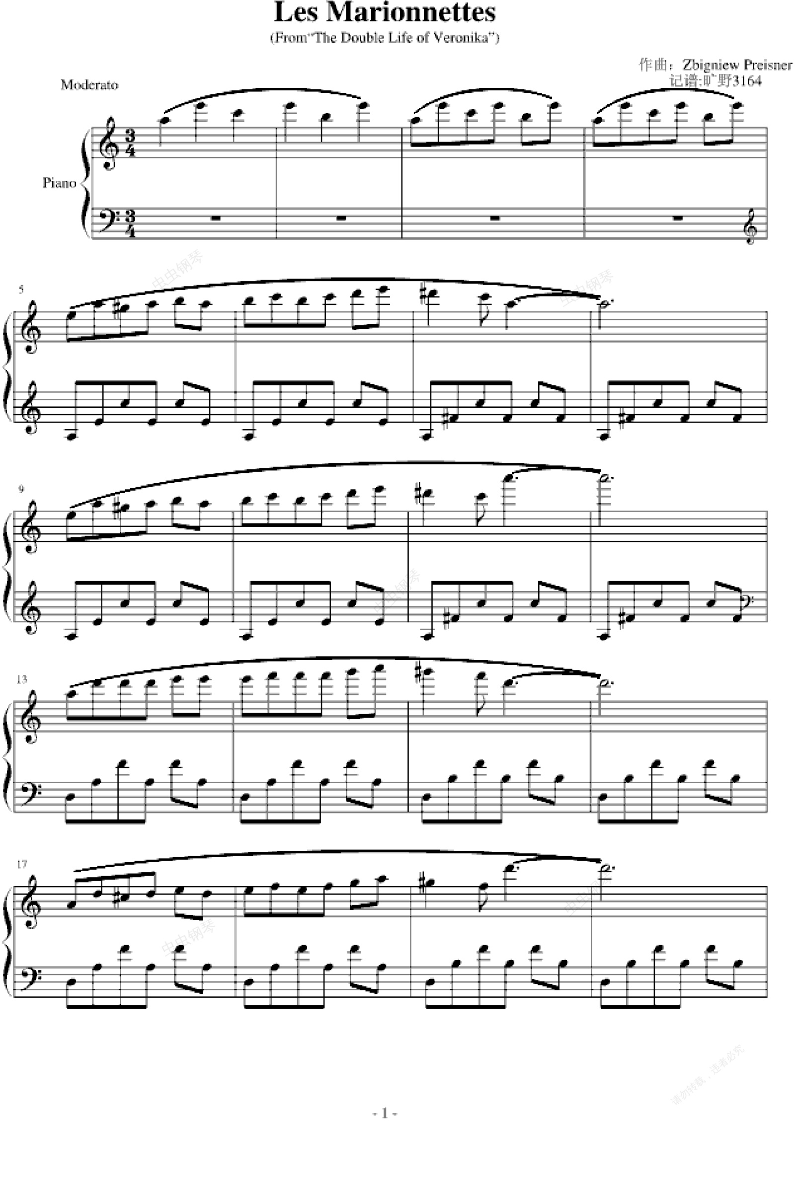 钢琴谱:Les Marionnettes(出自电影《维洛尼卡的双重生命》)