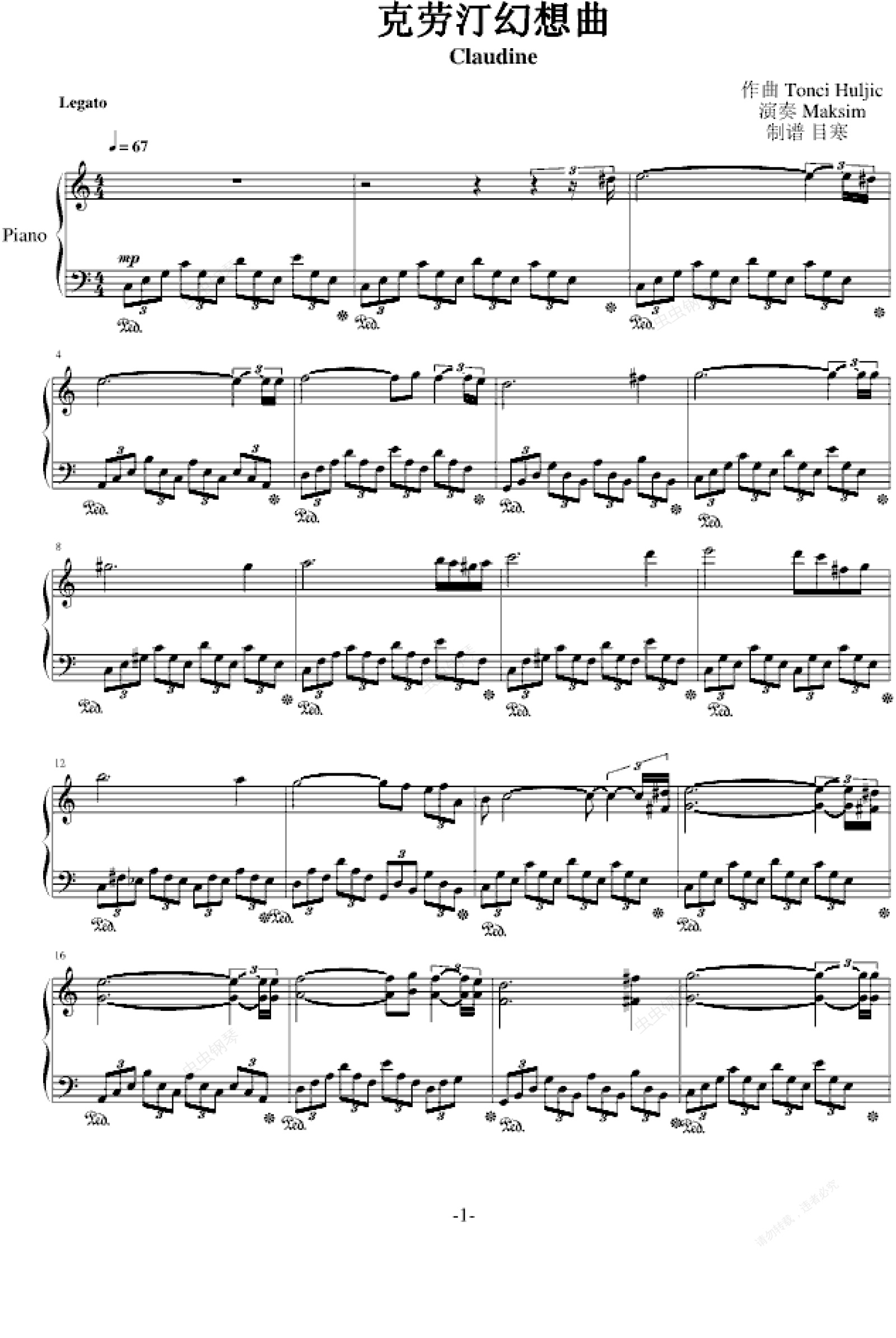 钢琴谱:Claudine克劳丁幻想曲(完美版)