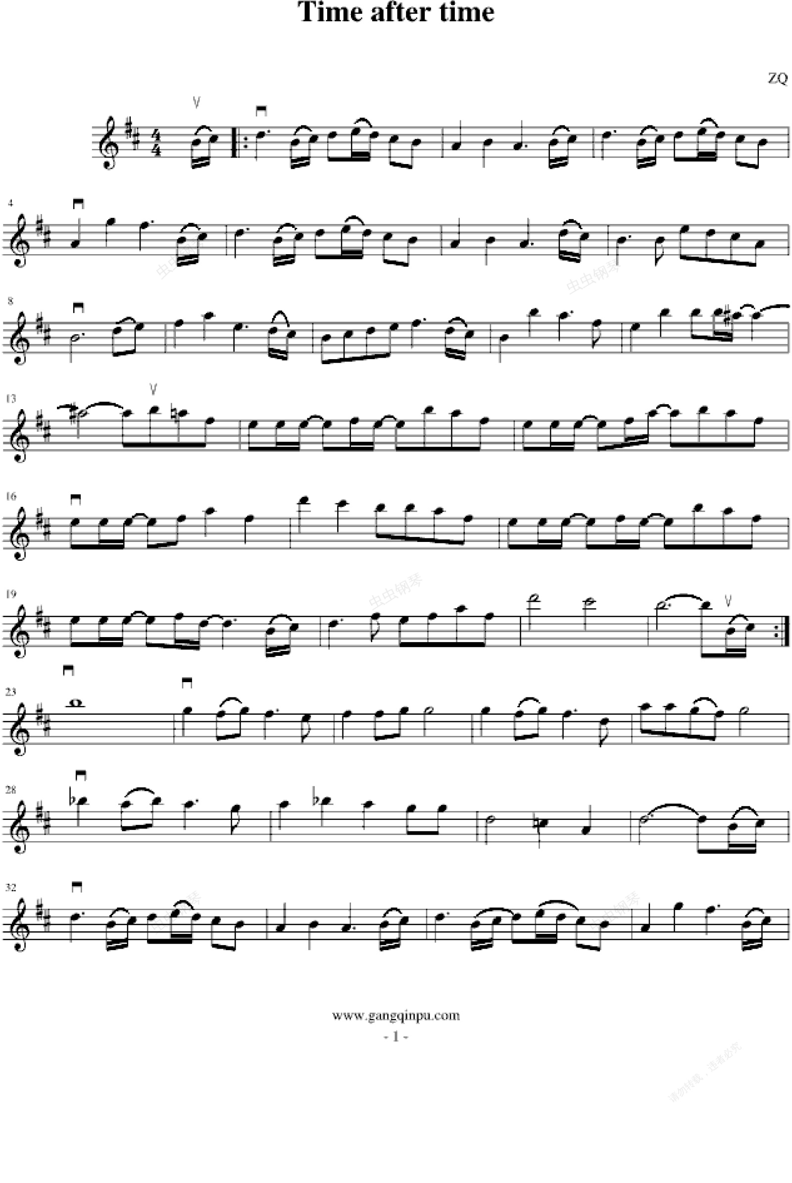 钢琴谱:Time after time-提琴