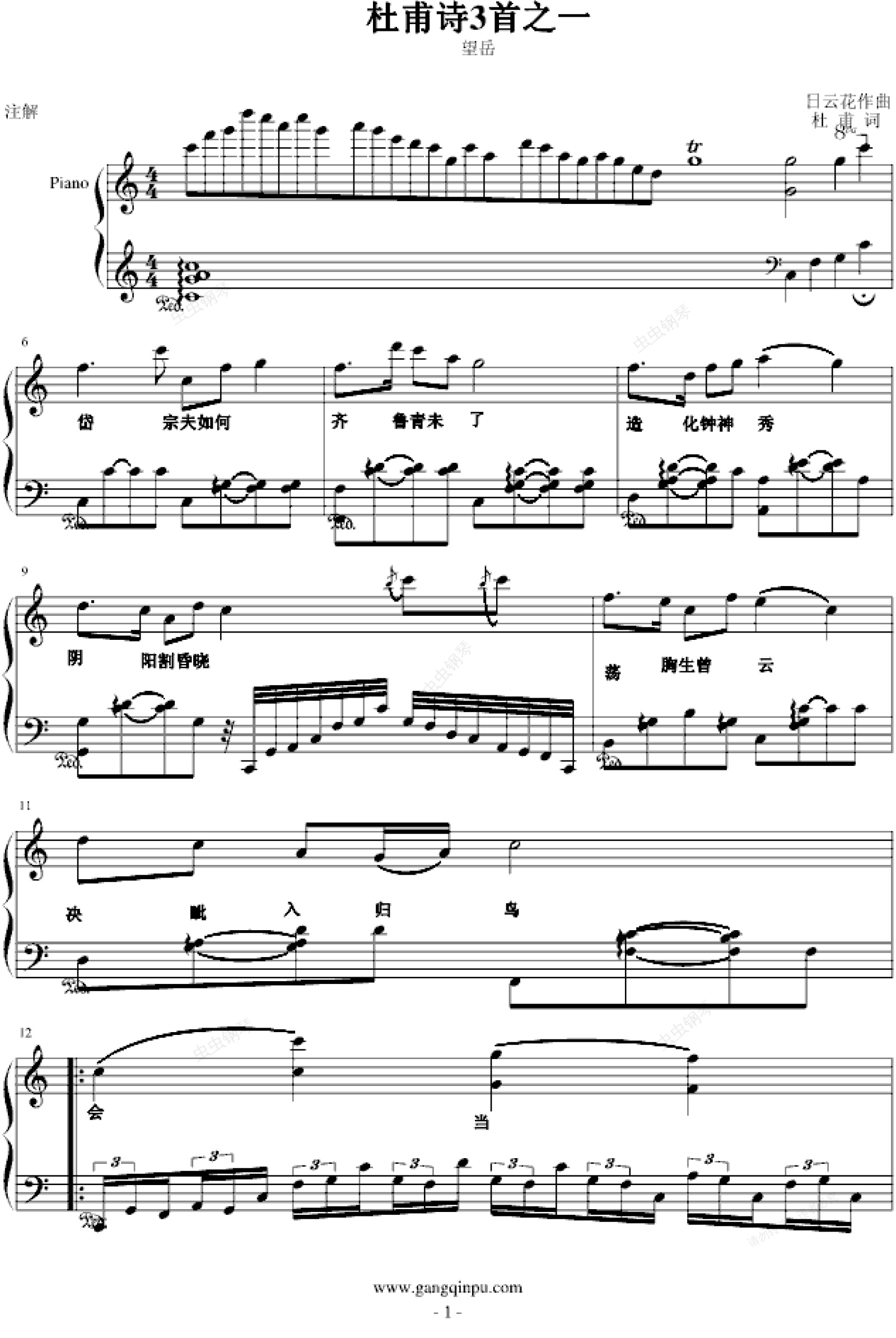 钢琴谱:杜甫诗三首之望岳