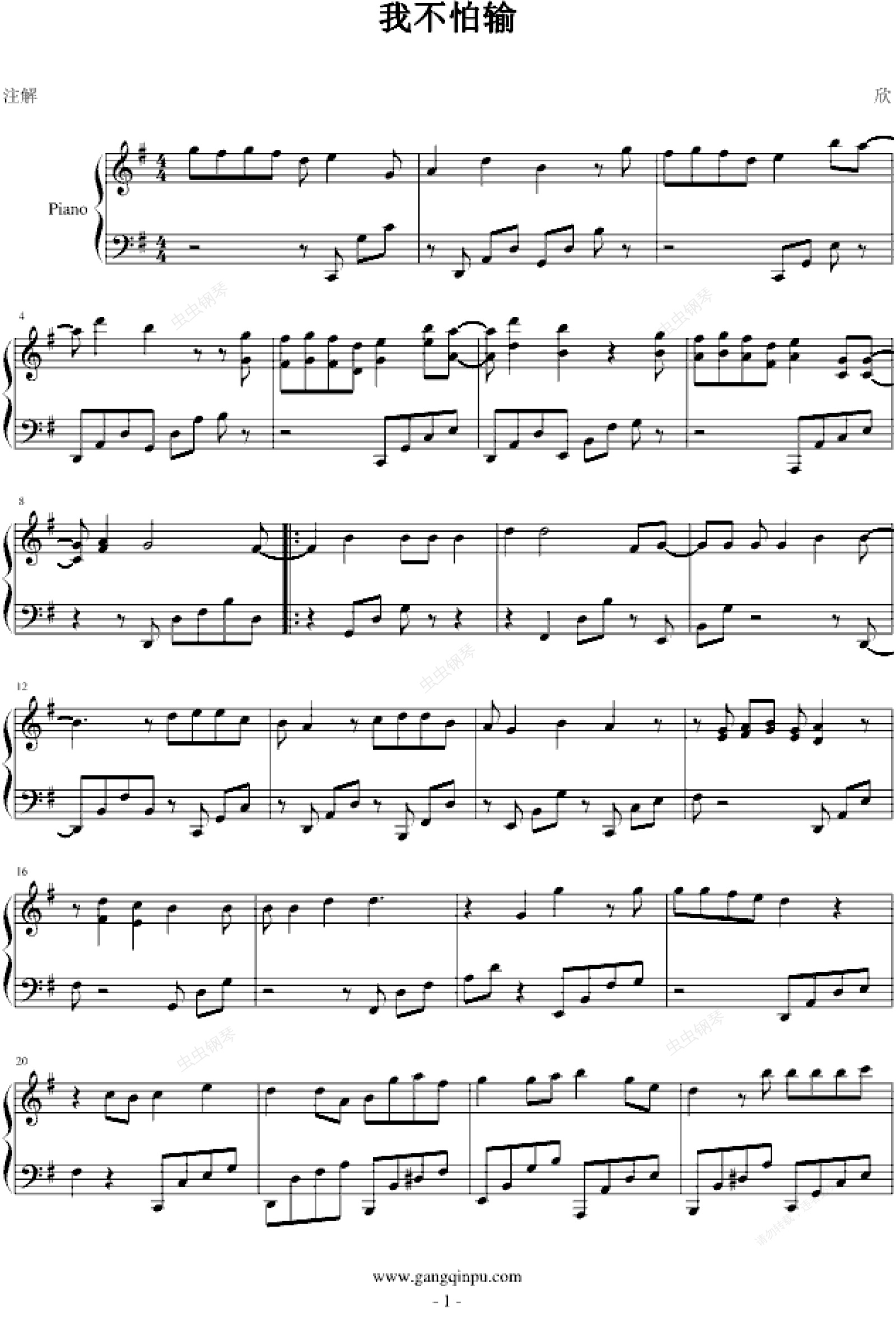 钢琴谱:我不怕输