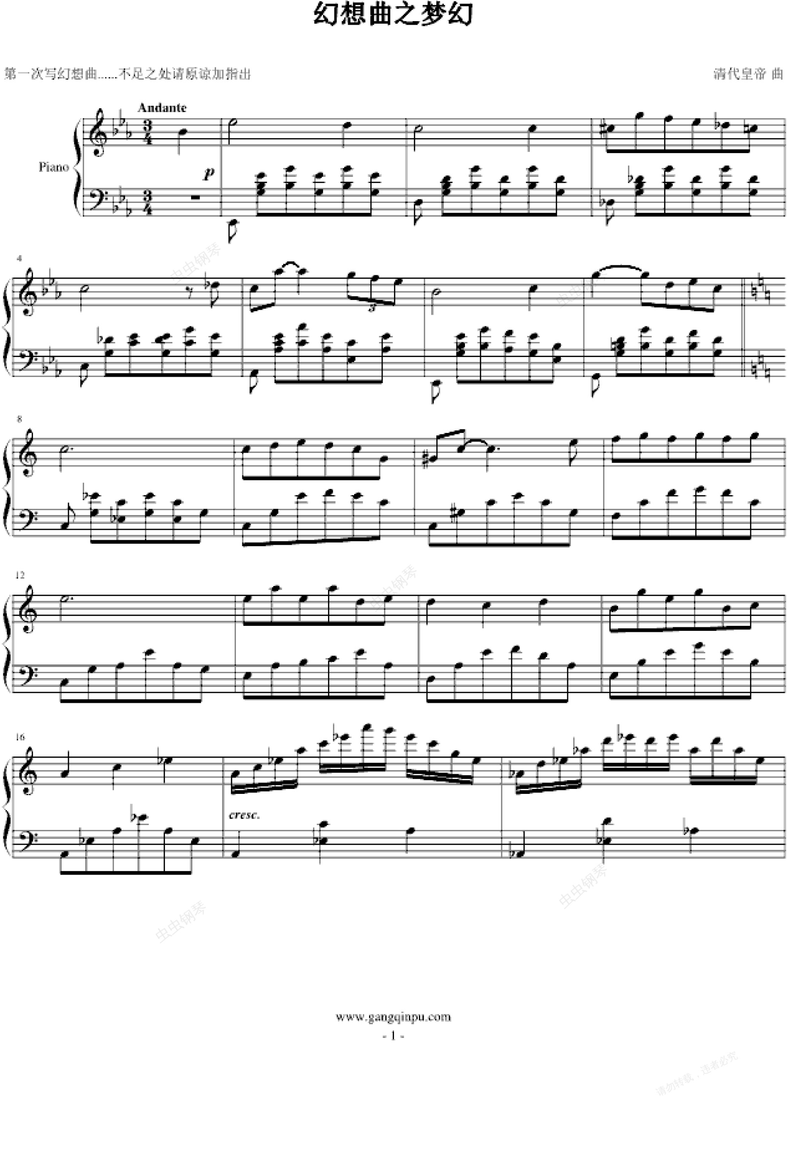 钢琴谱:幻想曲之梦幻