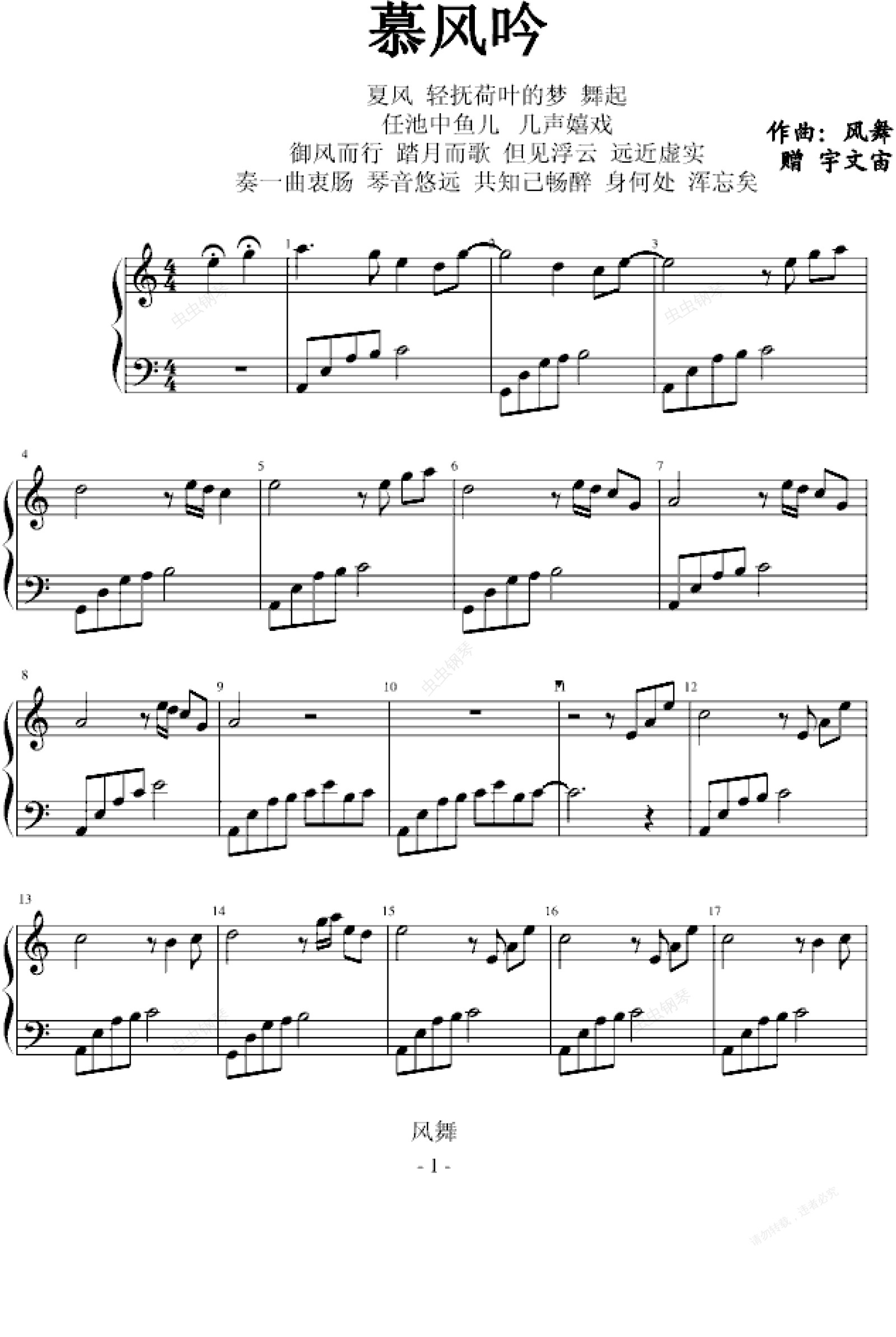 钢琴谱:慕风吟