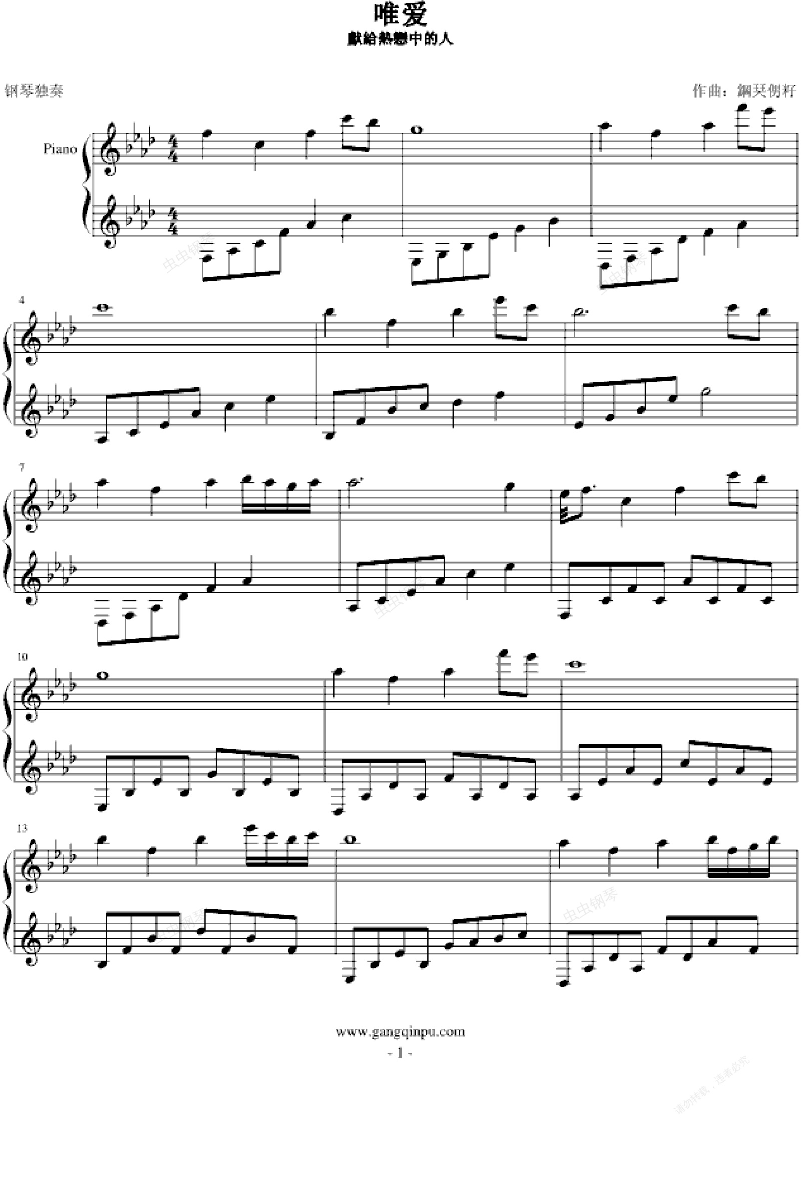 钢琴谱:唯爱