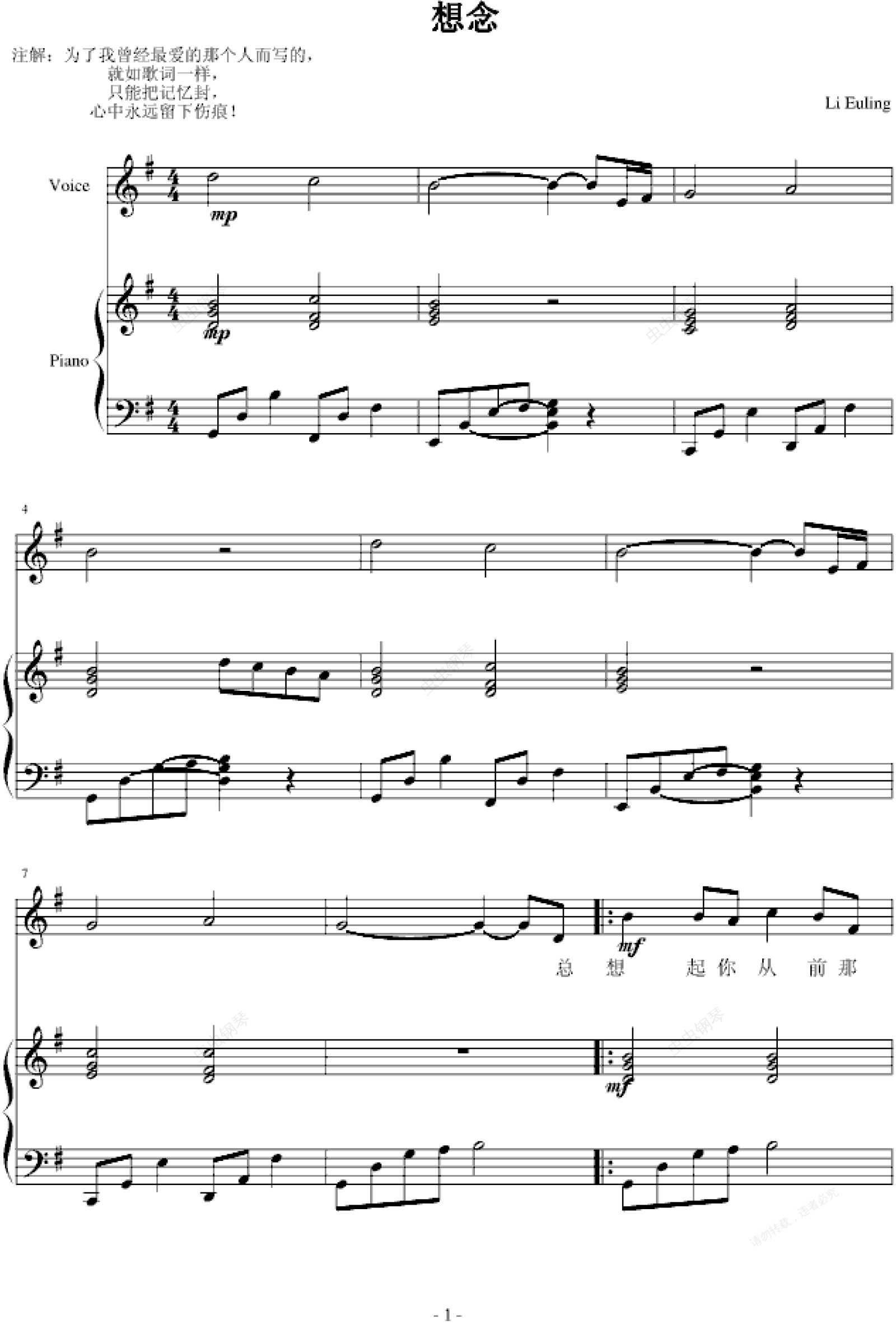 钢琴谱:想念(完美版)