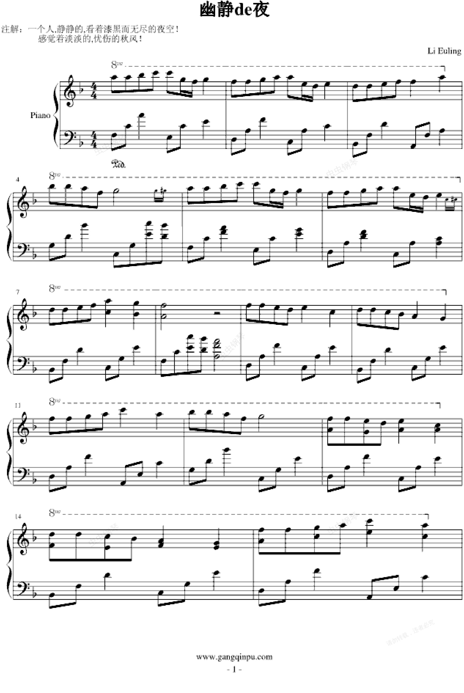 钢琴谱:幽静de夜
