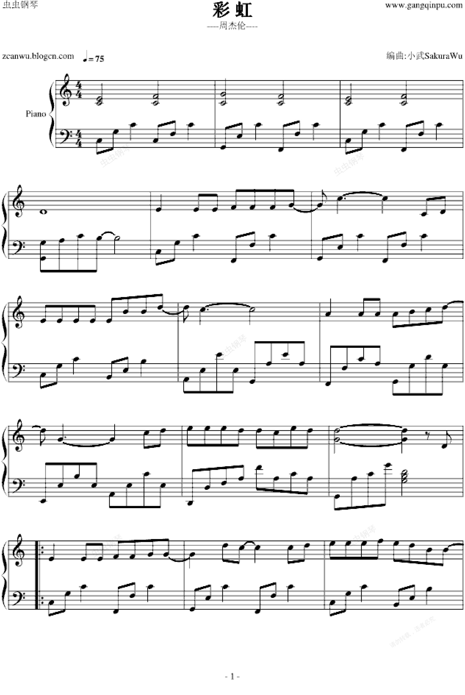 钢琴谱:彩虹-周杰伦------小武Sakura编