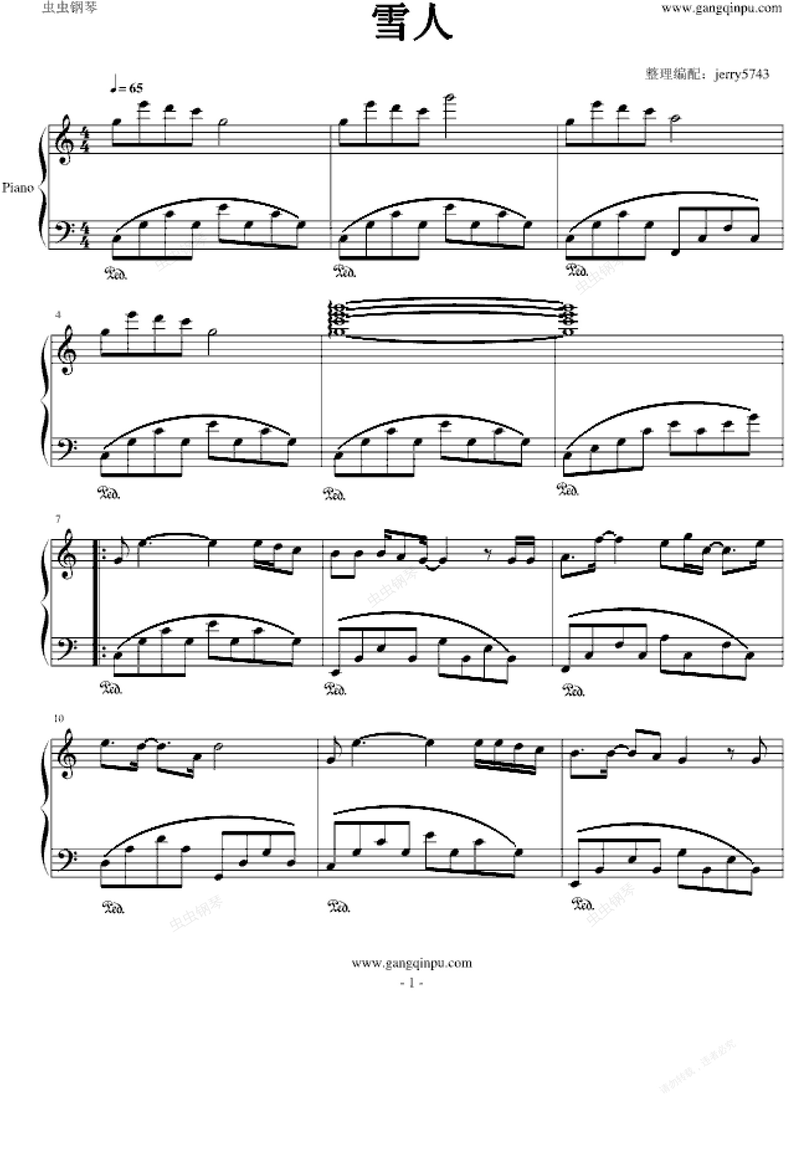 钢琴谱:雪人