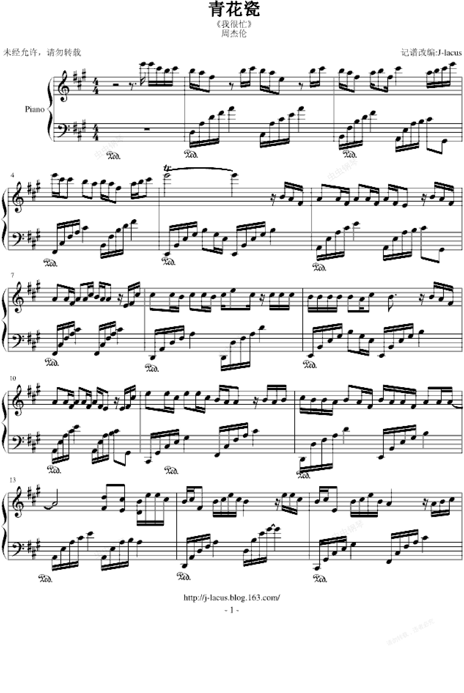 钢琴谱:青花瓷—Lacus完美演奏版